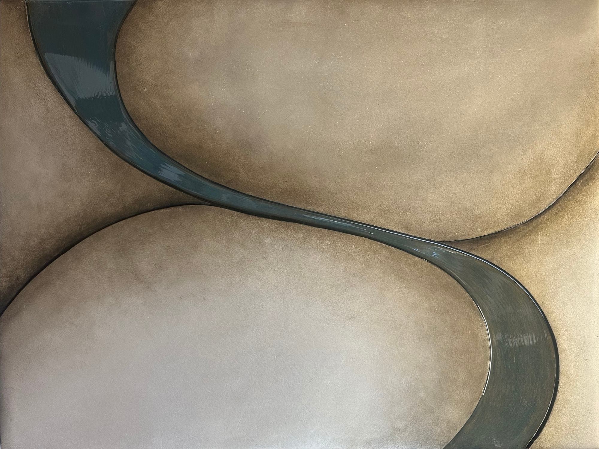 This panel series was inspired by the Momentum bronze sculpture series. It is sculpted and shaped from joint compound to illustrate the flow of life's energy. The blue flow is represented with gold mica in clear resin over a background painted blue to resemble the blue onyx in the sculptures. Each panel represents its own unique flow pattern.