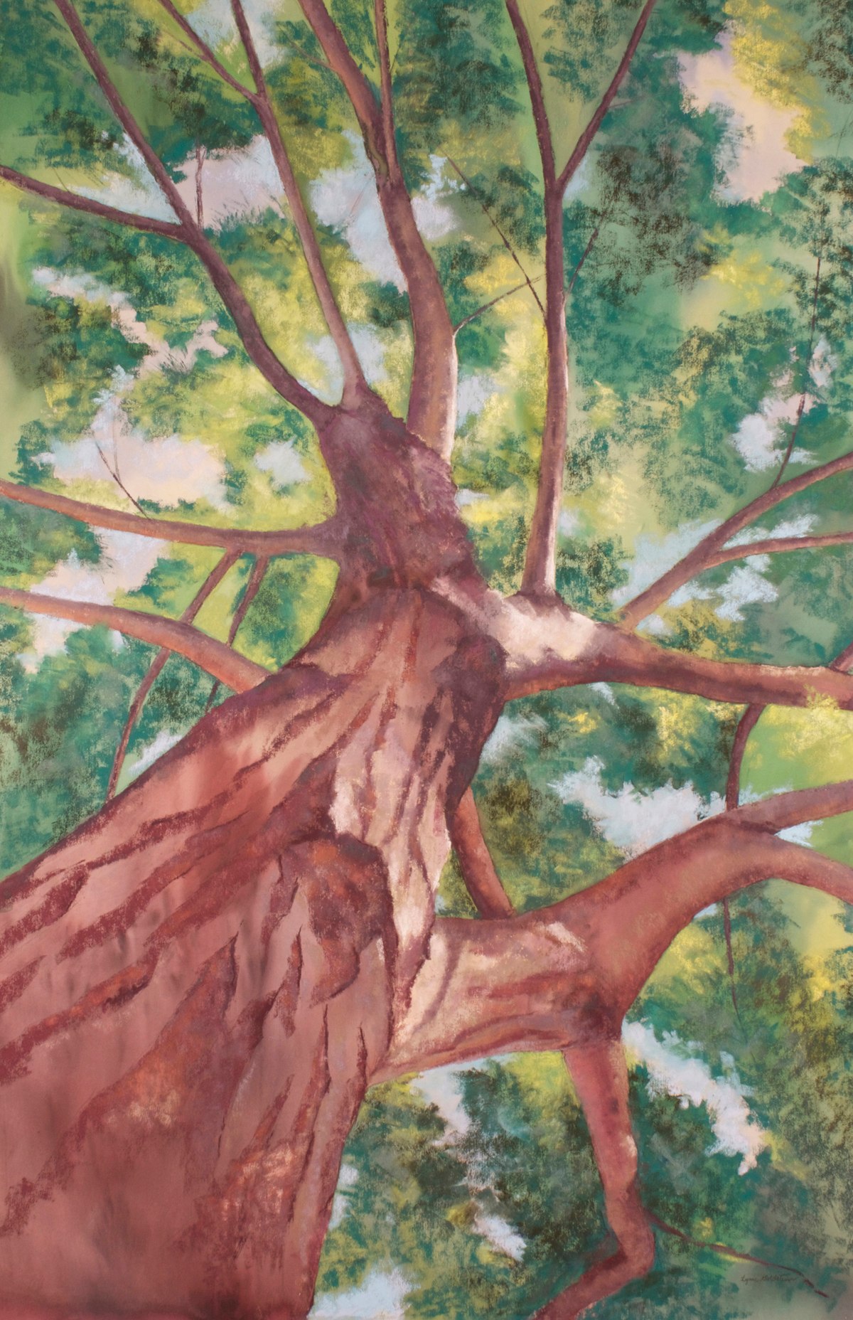 This tree is right down the street from my home. While making reference photographs, I believe that my neighbor thought that I was ill. That's what happens when an adult gets down on the ground and looks up into the canopy of a tree. Too bad, it's a great view!