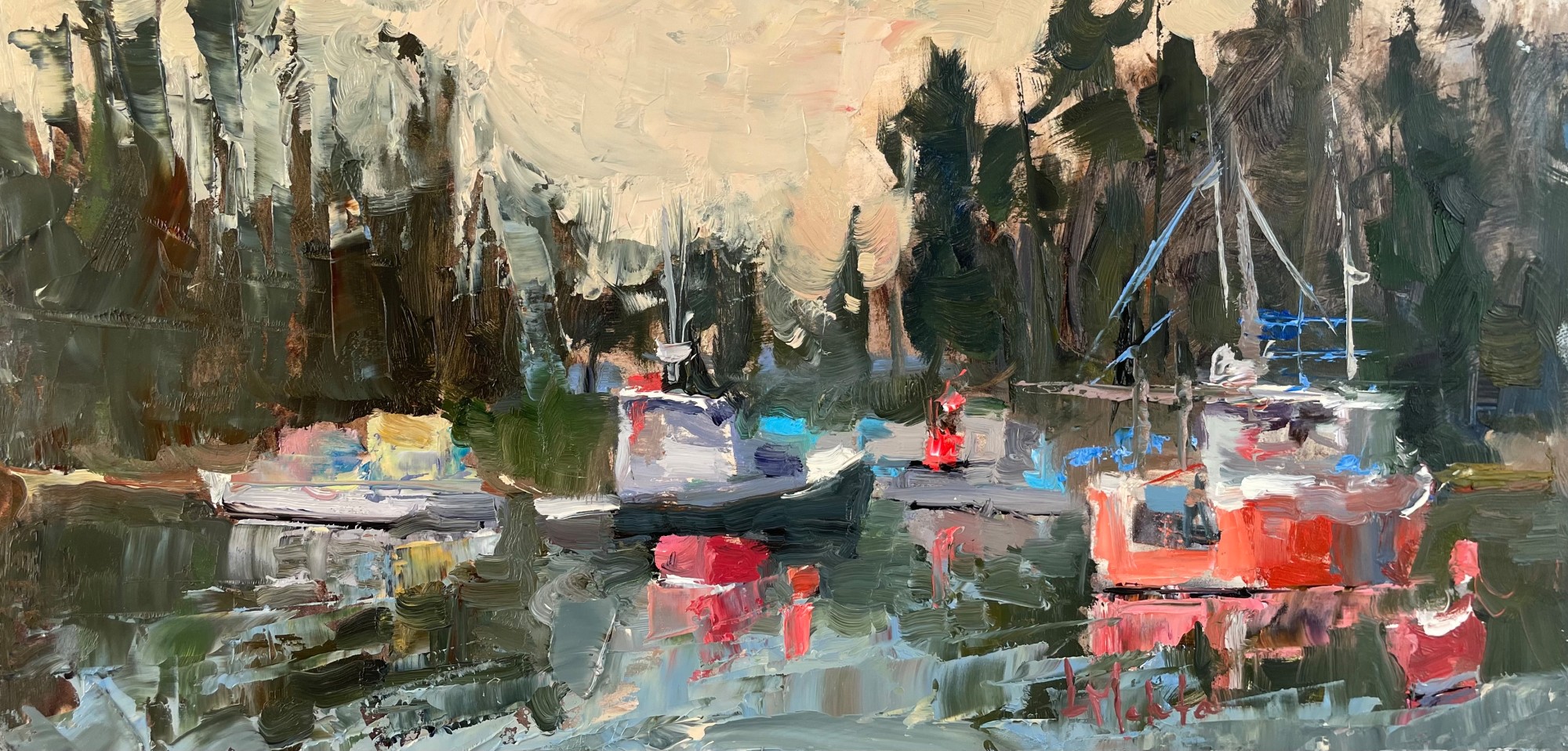 Morning in the Harbor by Lynn Mehta  Image: Morning in the Harbor, 6" x 12"