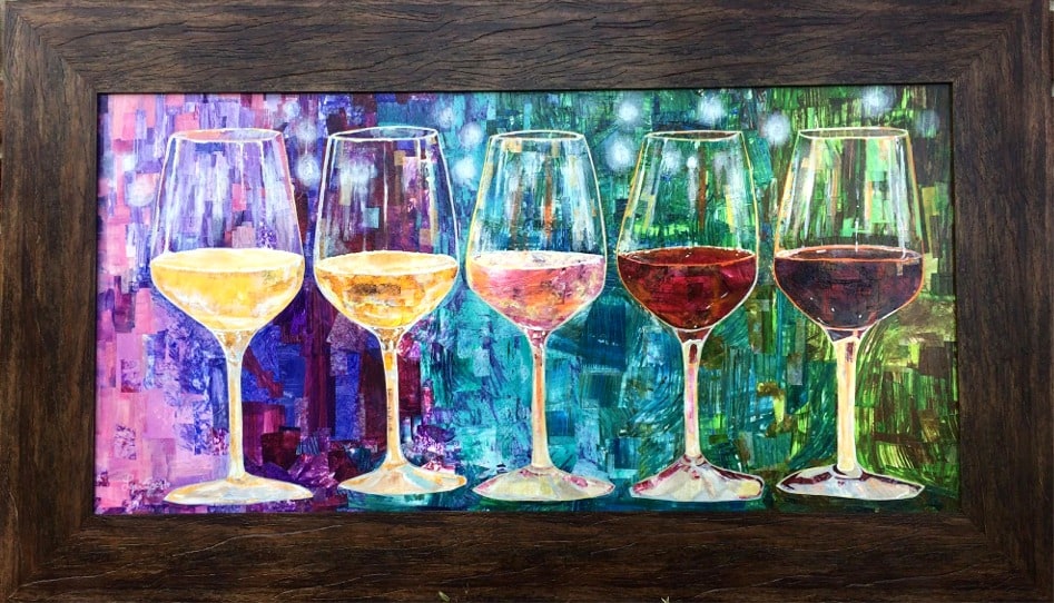 What could be more inviting than the aroma and colors of a freshly poured glass of wine! Let your imagination take your eyes and taste buds on a colorful journey from the cool, crisp white wines right through to the bold, dark reds. Playful for your eyes and your palette!