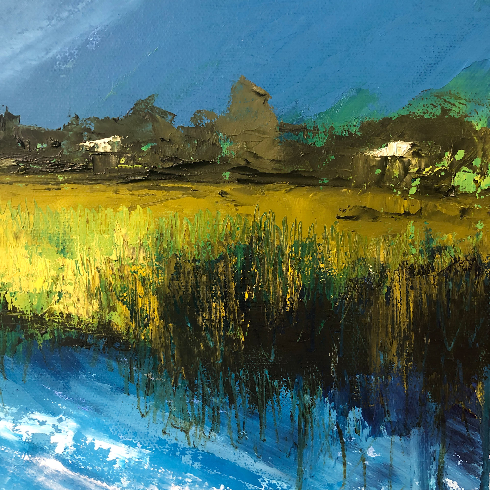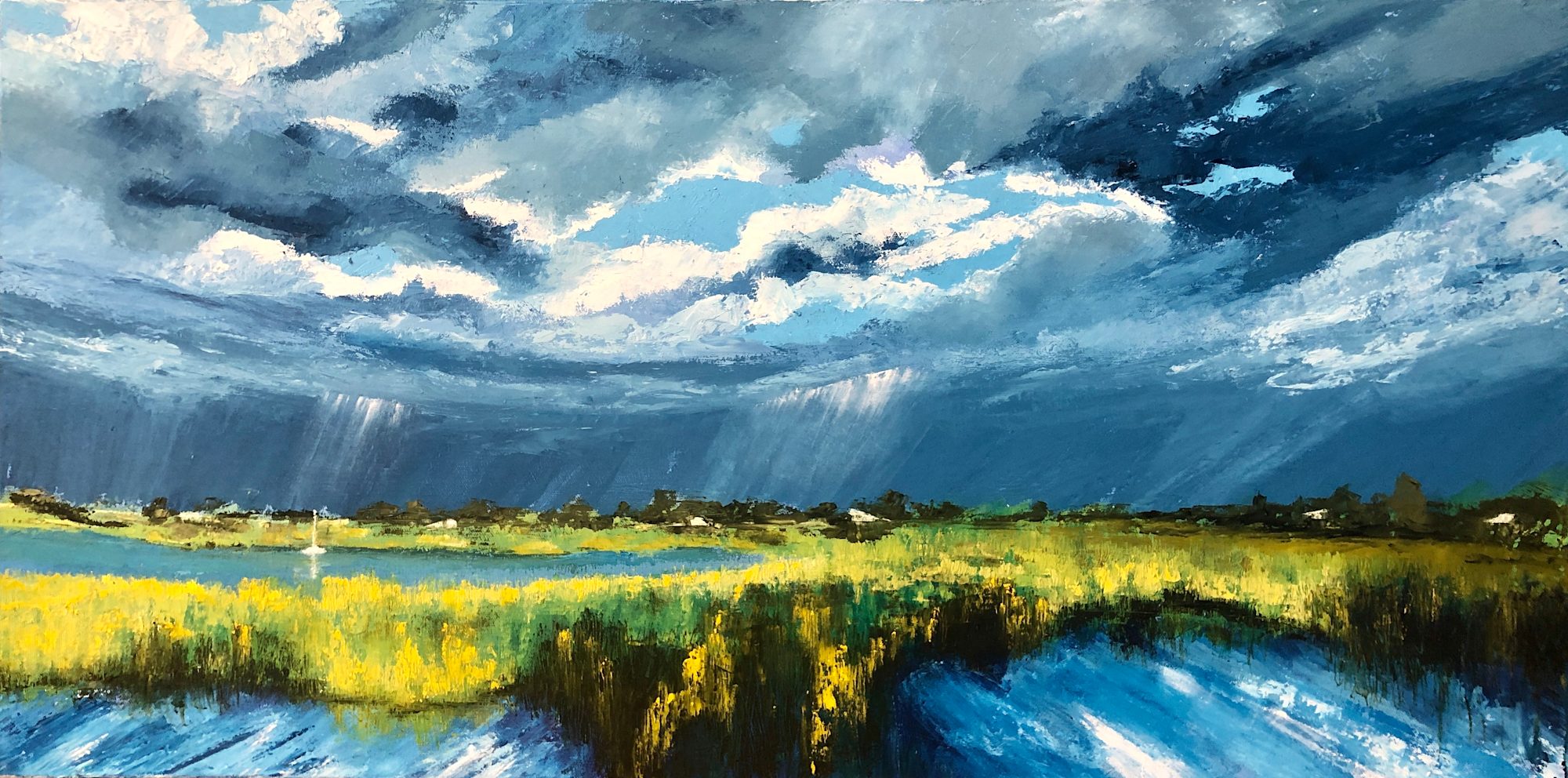 It's late afternoon, walking through the Caravan Park looking towards Old Clayton over Lake Alexandrina. The storm has broken and is moving on - the sun is starting to break through the clouds, creating glimpses of bright light and warmth amongst the dark shadows in the reeds.