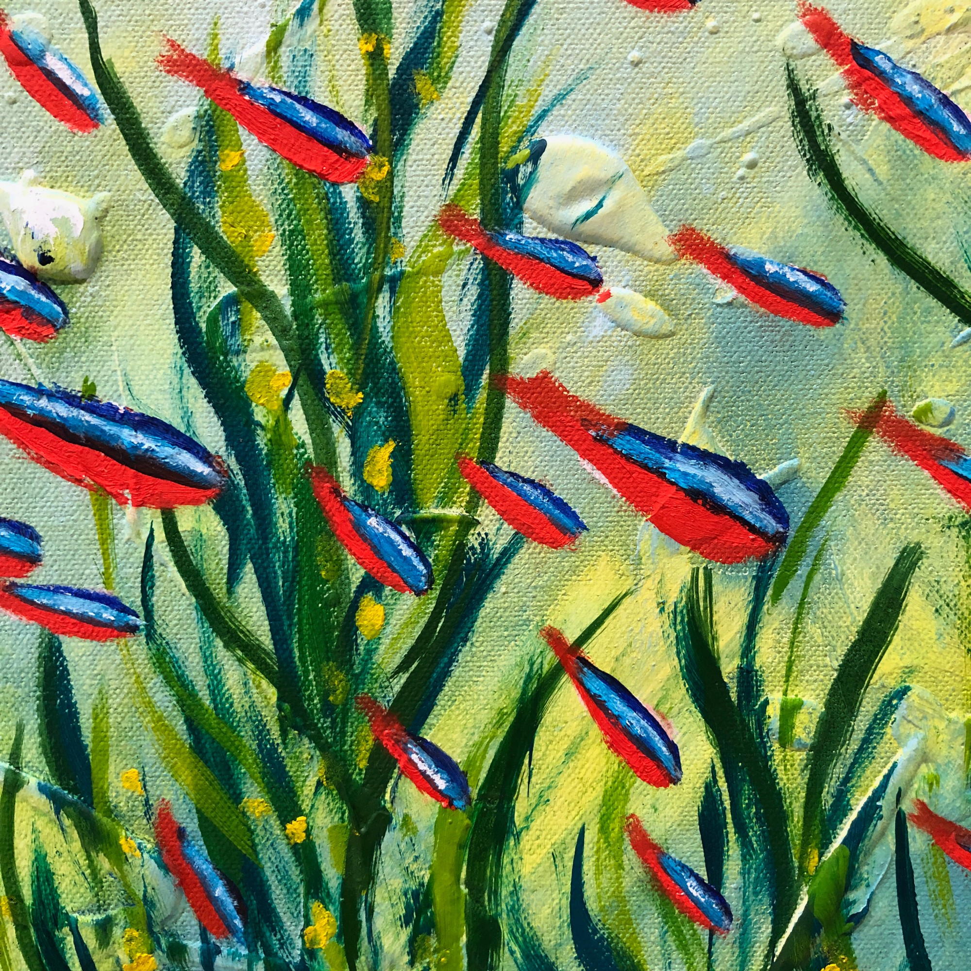 The Cardinals begin their decent at the end of the day to the lower depths to nestle in for the night, secure amongst the grass forests on the sea bed.