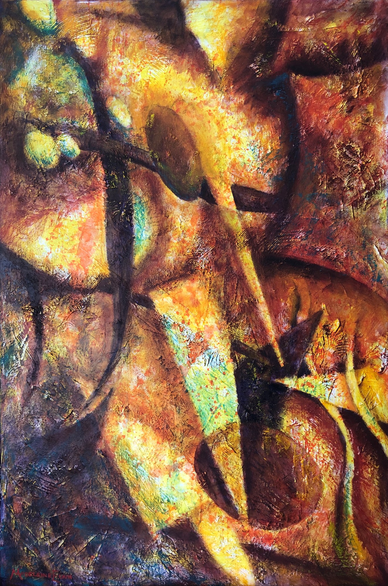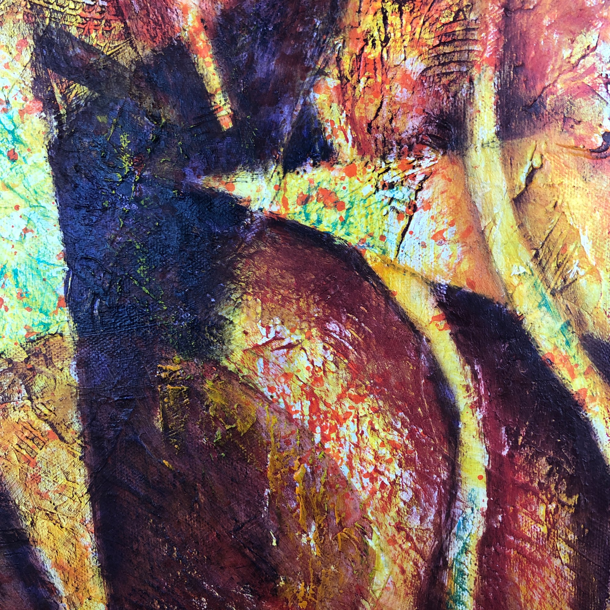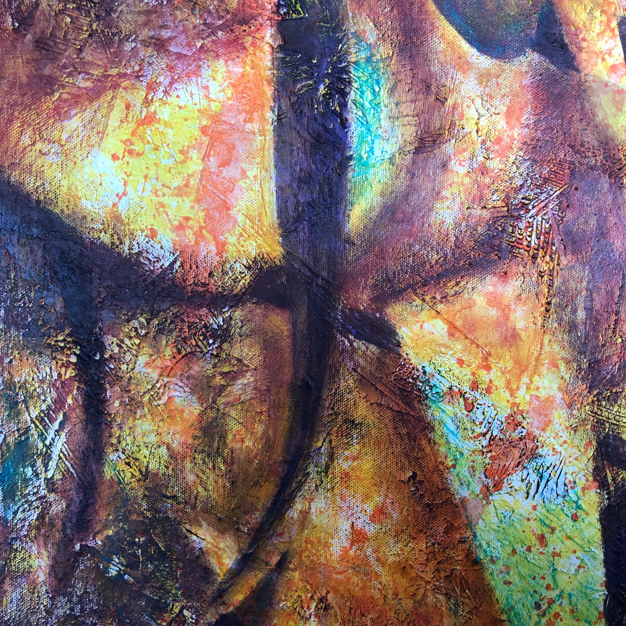 There is something freeing about doing an abstract piece - you start with a basic idea and then let the painting take you where it wants to go. This one started from cut outs of random shapes, scrubbed in with oils over a layer of textured acrylic work and texture paste.