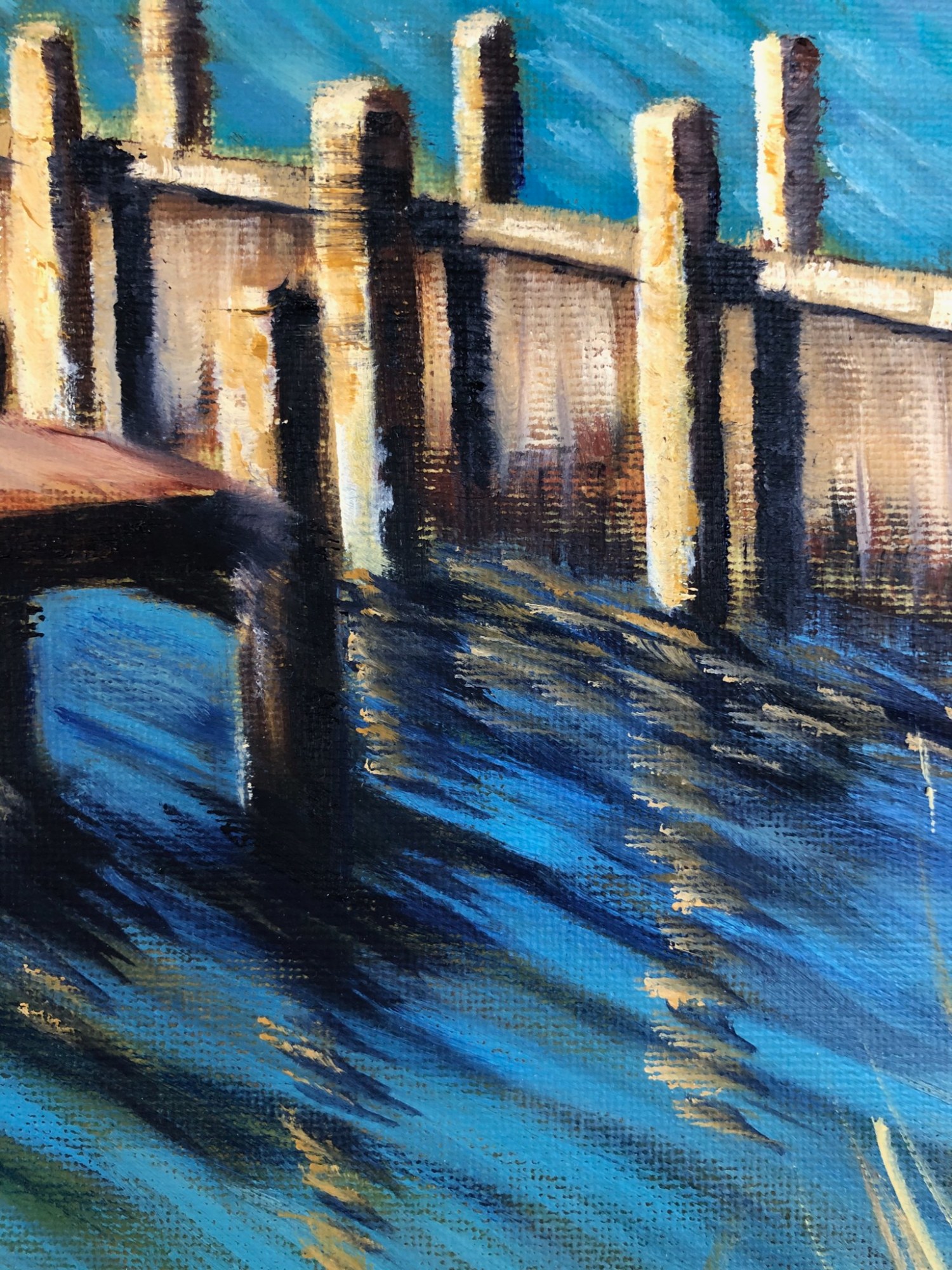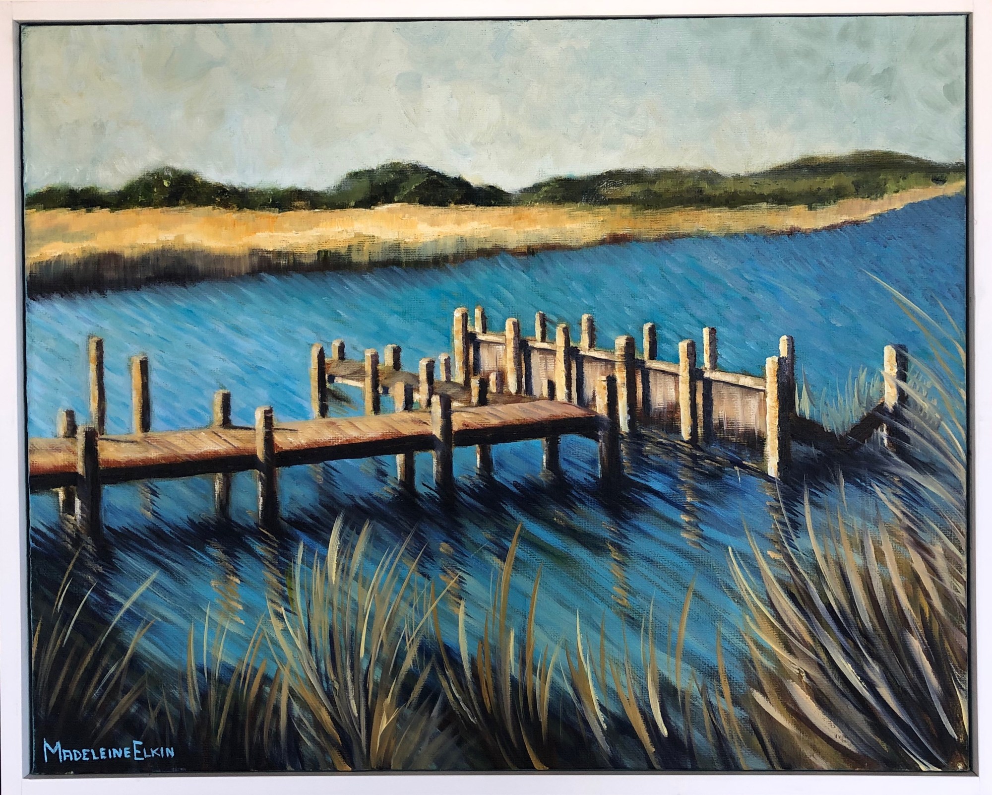 My 1st painting of our new home at Clayton Bay. There are many of these small inlets, a part of the Alexandrina Lake, and protected from the Pacific Ocean by the Coorong. This pier is a favourite spot for the Pelicans and Shags to roost as it captures the early morning rays.