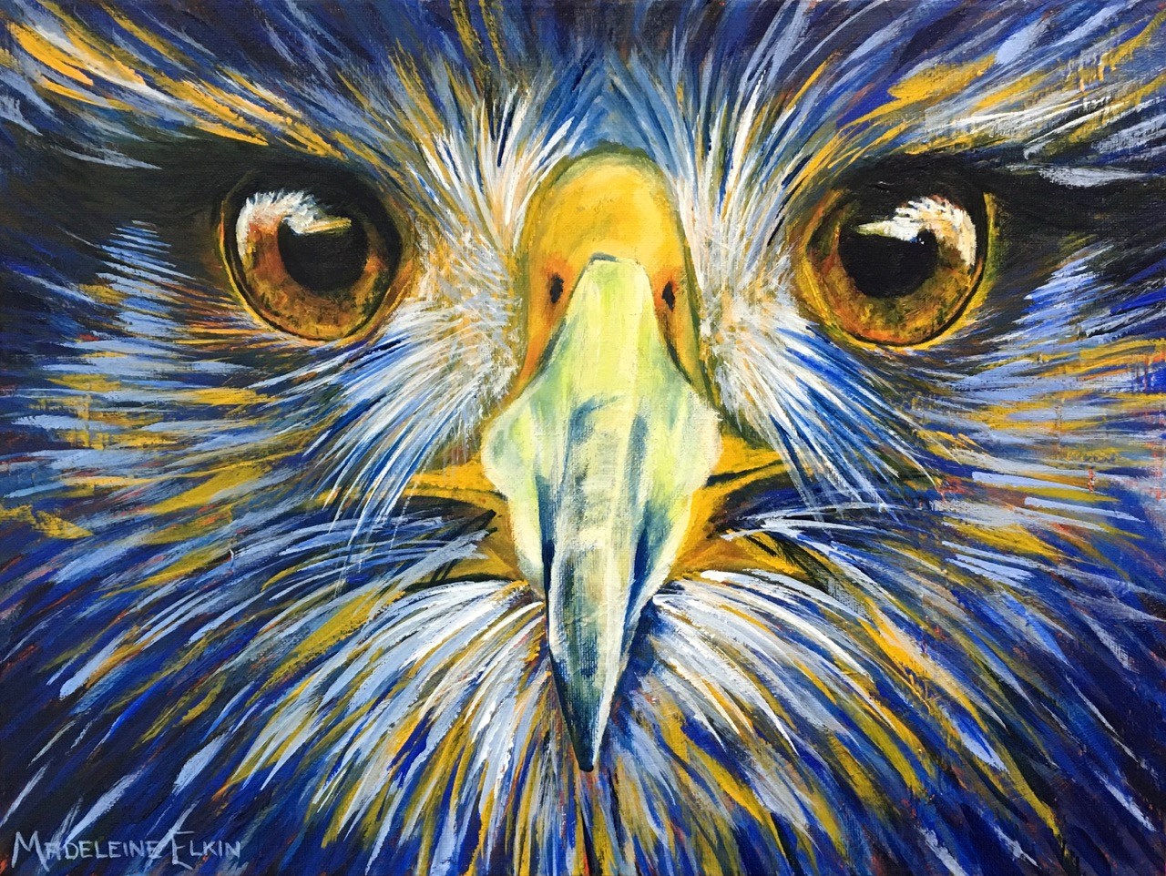 The eyes of an eagle, done in my signatory non realistic colours. This time complementary colours blue and orange