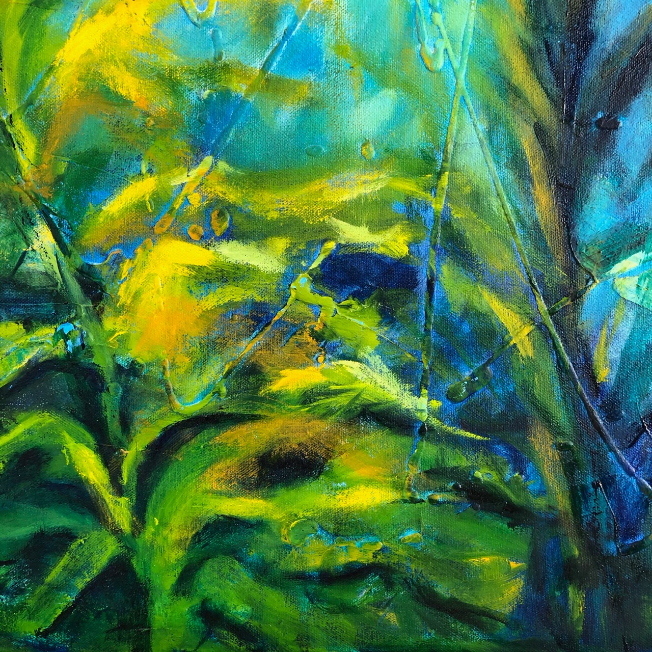 I have lived along the coast all my life, and my love of the ocean, it's creatures and the peace are all factors that inspire me to paint these underwater pieces. My love of colour is always evident and reflected in the vibrancy and boldness of my pieces. My works are very impressionistic and start with an often busy background of colour and texture in acrylics, which I then paint over the top of in oils. I want these backgrounds to add their own interest to a painting in their mark making, but not take away from the main painting on top, and I invite the viewer to get up close and personal and look at what's going on in the many layers. Once completed, I like my underwater scenes to be finished with a satin varnish spray, which adds a vibrancy and lusciousness to the colours and protects the work for years to come.