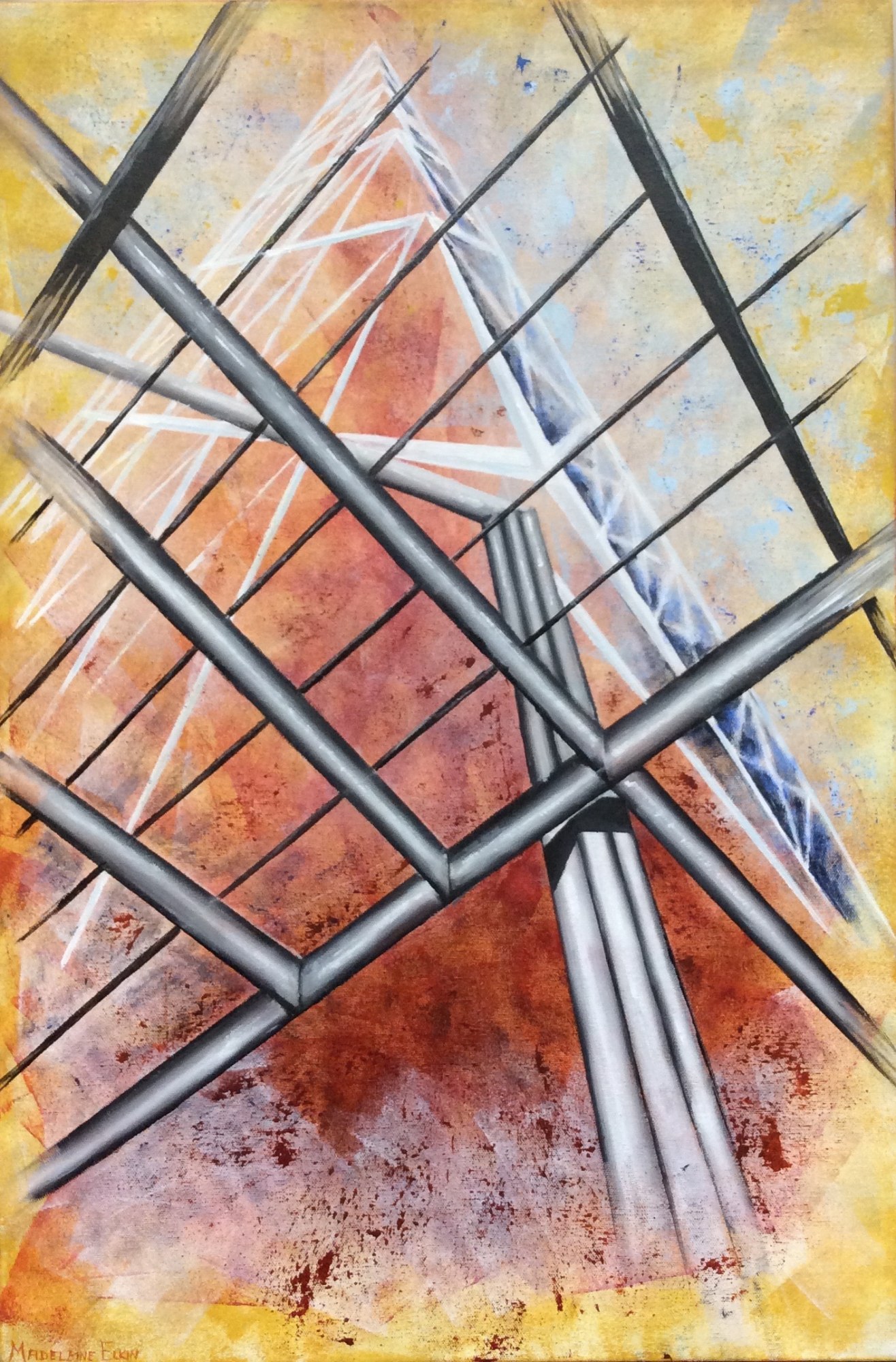 Looking from below, the city buildings look like fingers reaching for the sky.
