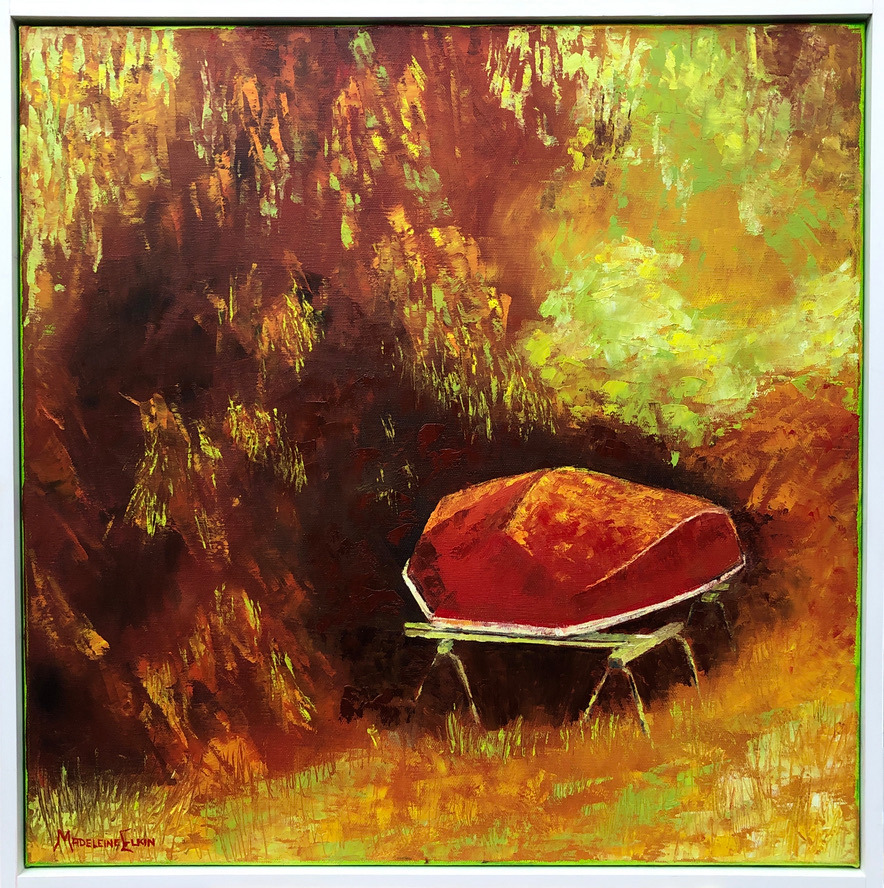 Not sure if this old boat in the front yard of a Clayton Bay home, is a work in progress or was just propped over to prevent the rain from filling her up with water. Either way, you just have to love that red!