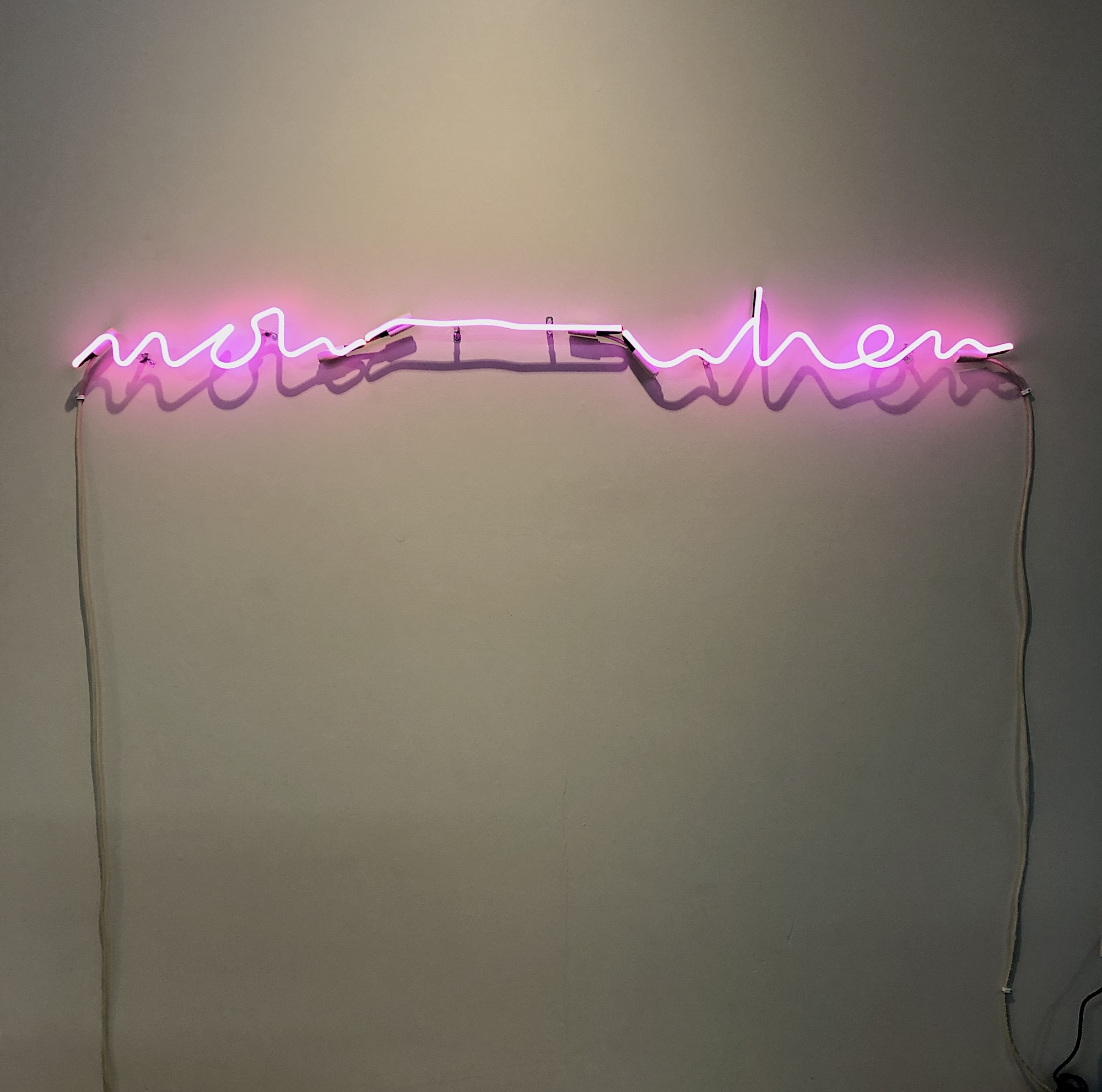 One of two neon pieces which refer to both the physics of, and the relationship between, time and space.