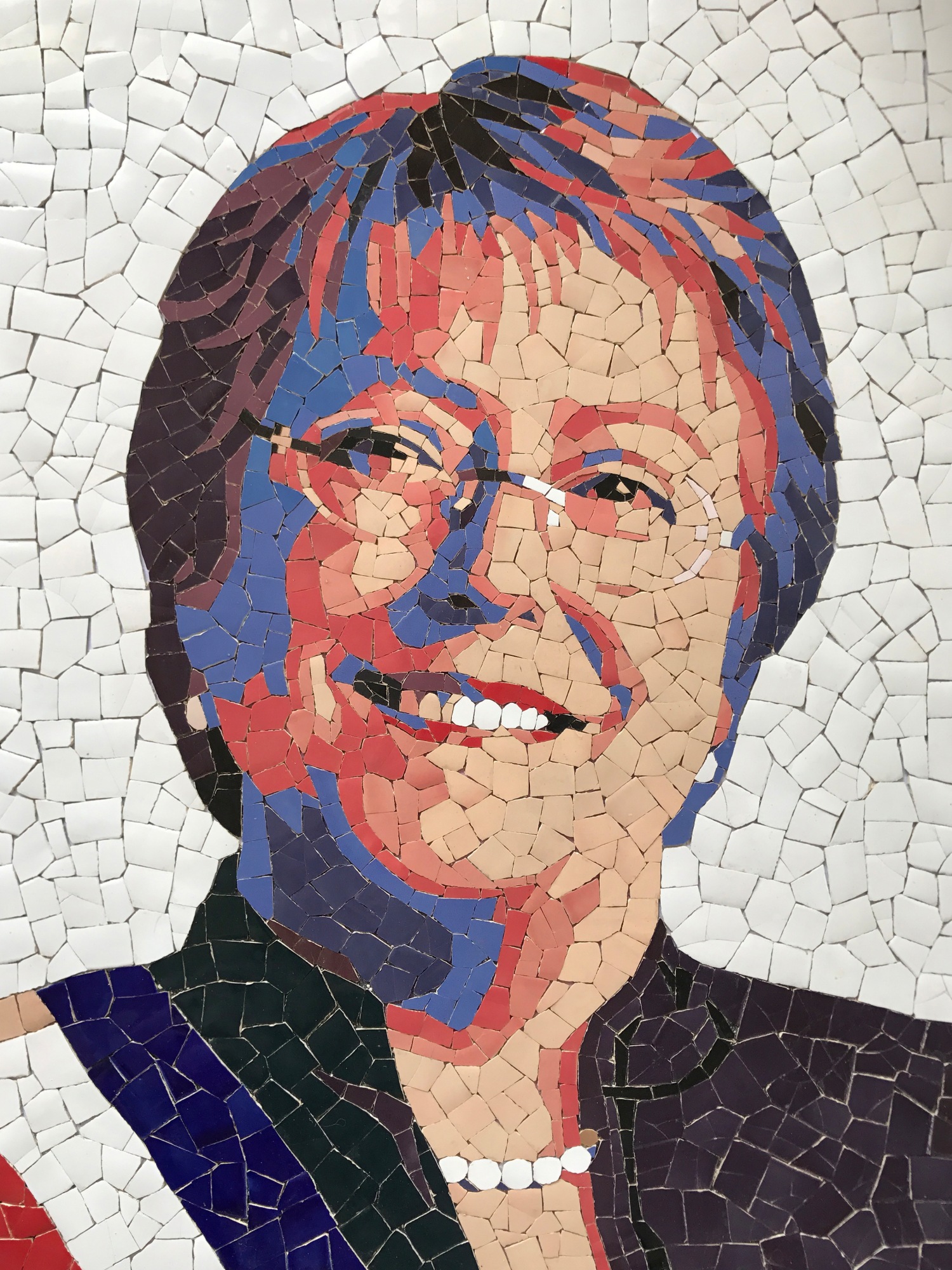Portrait of Chiean President Michelle Bachelet, 2017 - This captivating mosaic portrait, created by artist Mai Nhon, commemorates President Bachelet's visit to Vietnam in 2017. Crafted with meticulous precision, the portrait utilizes the exquisite artistry of Bien Hoa ceramics. Each ceramic fragment, carefully selected for its unique color and tone, is meticulously placed to form a one-of-a-kind and truly unforgettable artwork.