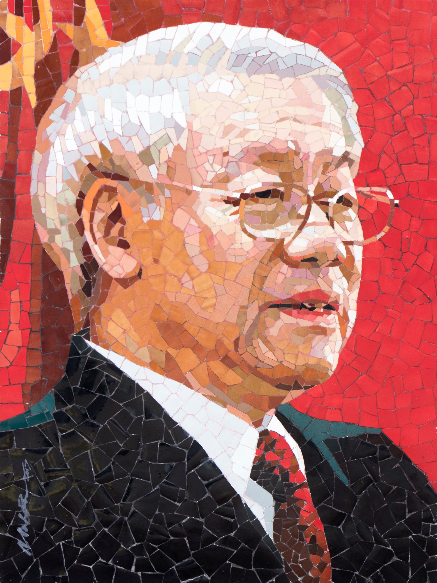 Portrait of Vietnamese General Secretary Nguyen Phu Trong, 2017 - This one-of-a-kind mosaic portrait, a special gift from Dong Nai province to Vietnamese leaders in 2017, was created by artist Mai Nhon. The portrait beautifully showcases the artistry of Bien Hoa ceramics. Each meticulously placed ceramic fragment, carefully chosen for its unique color and tone, contributes to an exceptional and irreplaceable work of art. Contact us to own a museum-quality art print - a perfect gift or addition to your workspace!