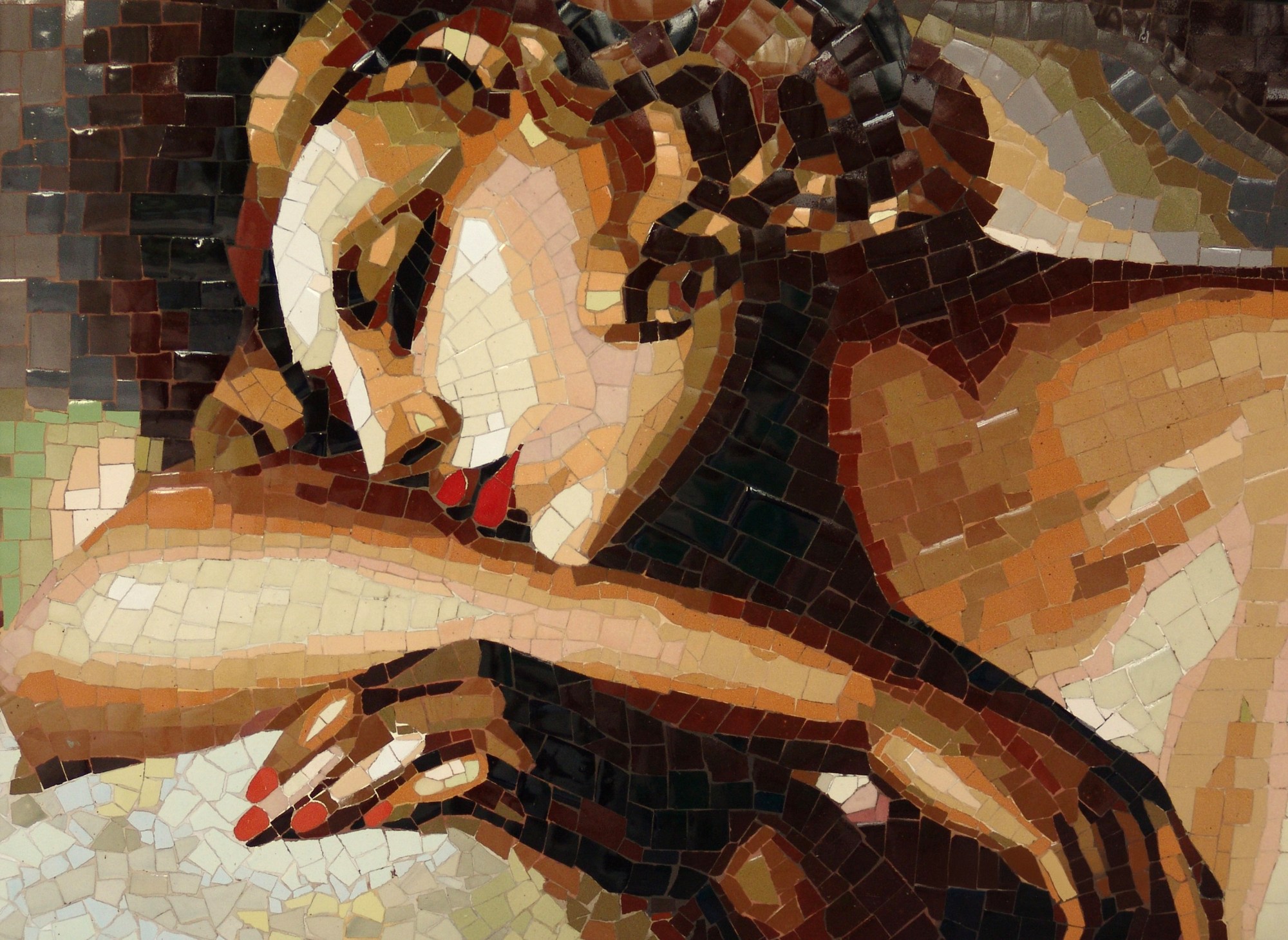 "La Dormeuse" (after Tamara de Lempicka) - This captivating reinterpretation of Tamara de Lempicka's iconic painting utilizes the artist's signature style of dramatic lighting, luxurious fabrics, and meticulous attention to detail, capturing a sense of timeless glamour. Artist Mai Nhon has masterfully recreated this piece using the intricate art of Bien Hoa ceramic mosaic, resulting in a stunning and unique work of art. Contact us to inquire about owning a museum-quality print of this exceptional piece.