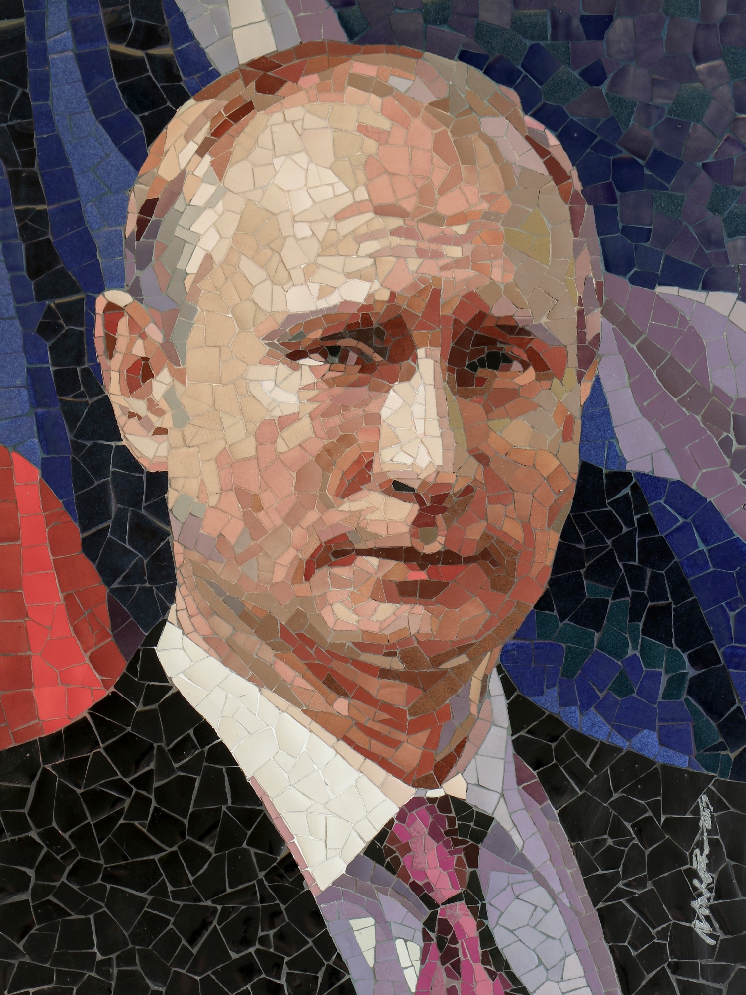 Portrait of Russian President Vladimir Putin, 2017 - This distinguished mosaic portrait, a special gift from the Vietnamese Government to the Leaders of the APEC economies in 2017, showcases the artistry of Mai Nhon. Utilizing the rich tradition of Bien Hoa ceramics, the artist meticulously arranged a tapestry of ceramic pieces, each carefully chosen for its individual color and nuance, to craft a truly unique and compelling work of art.