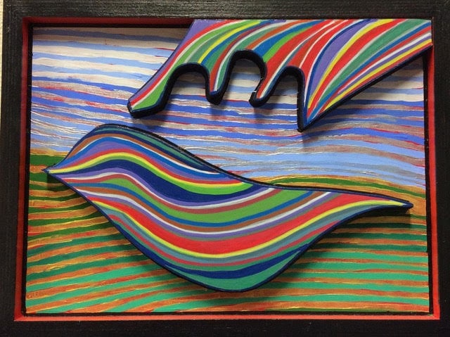 Framed piece with painted shapes painted with acrylics