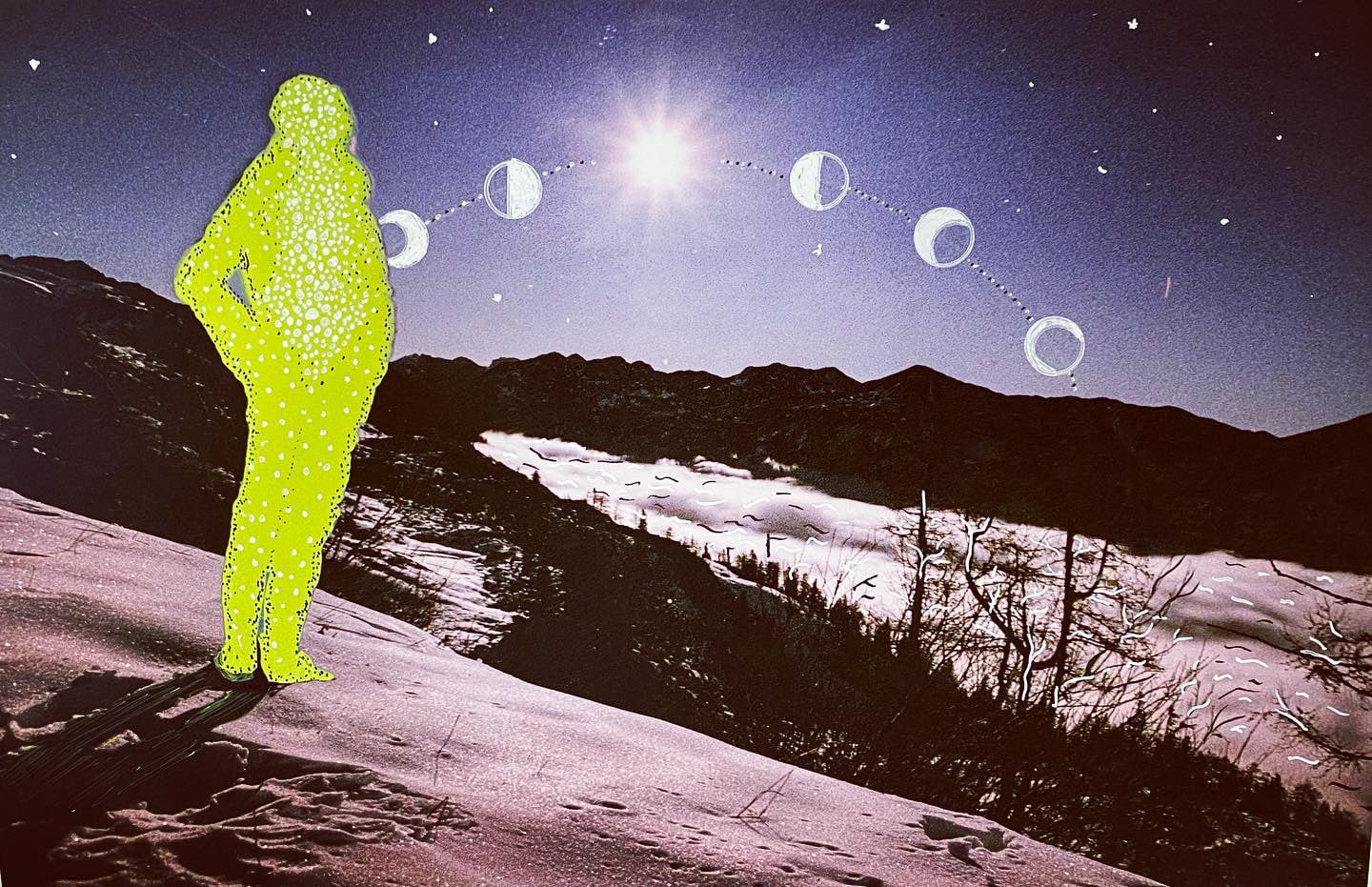This is a hand painted photographic print from an analogue image taken at night on Loser mountain on a full moon. Looking down at the state of the world