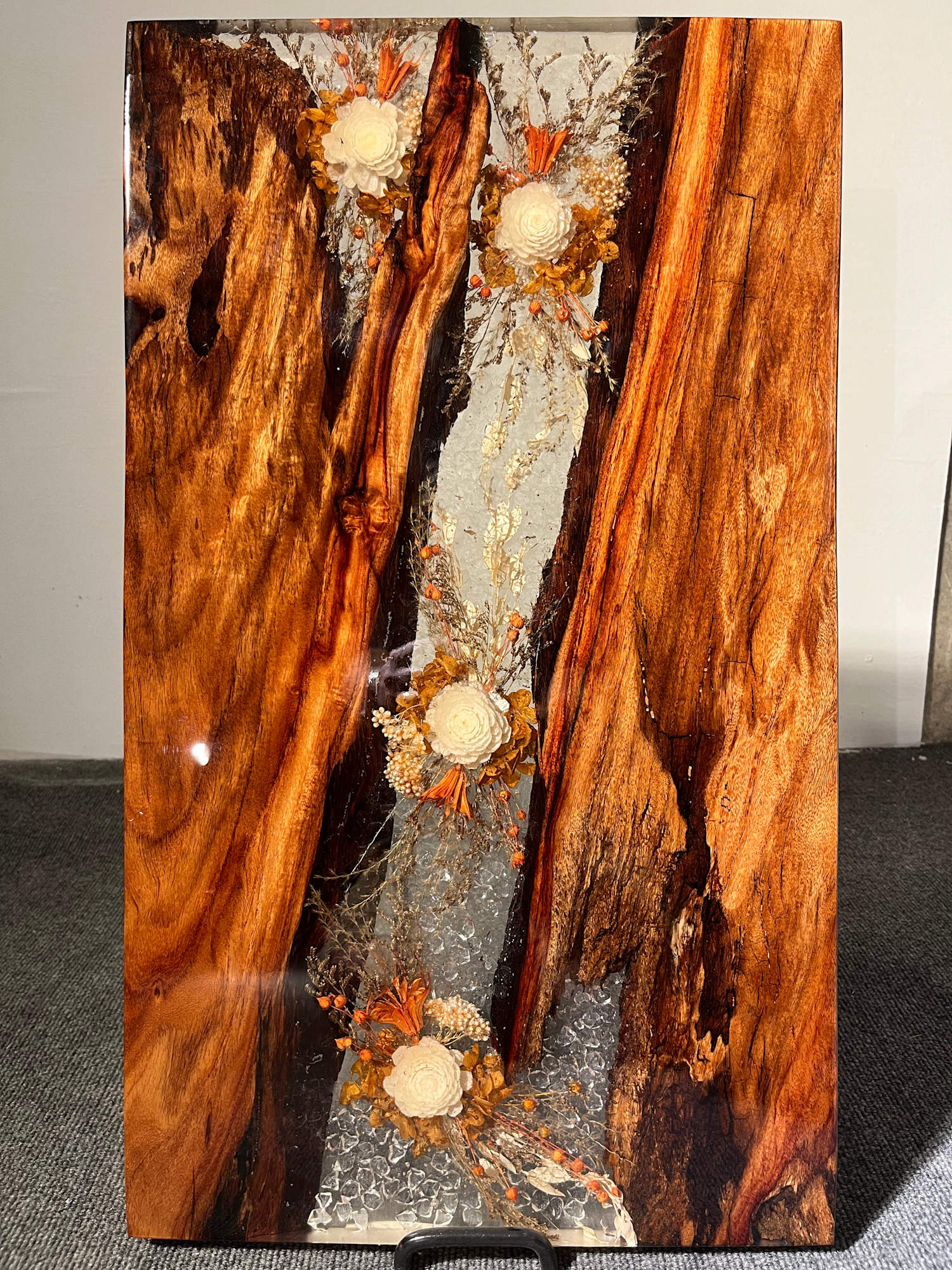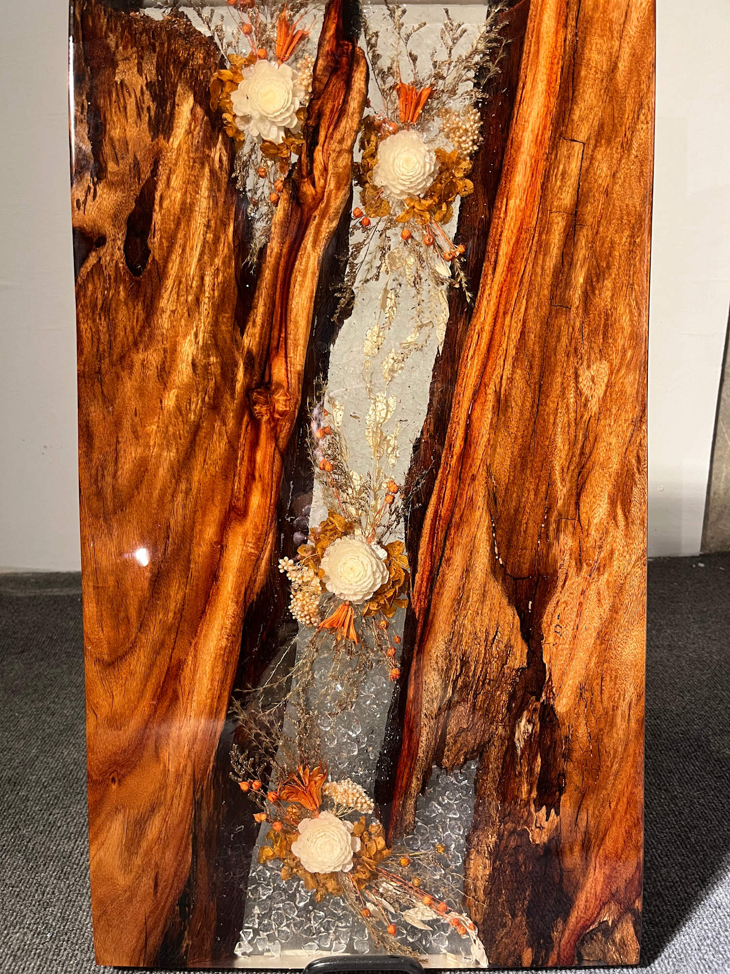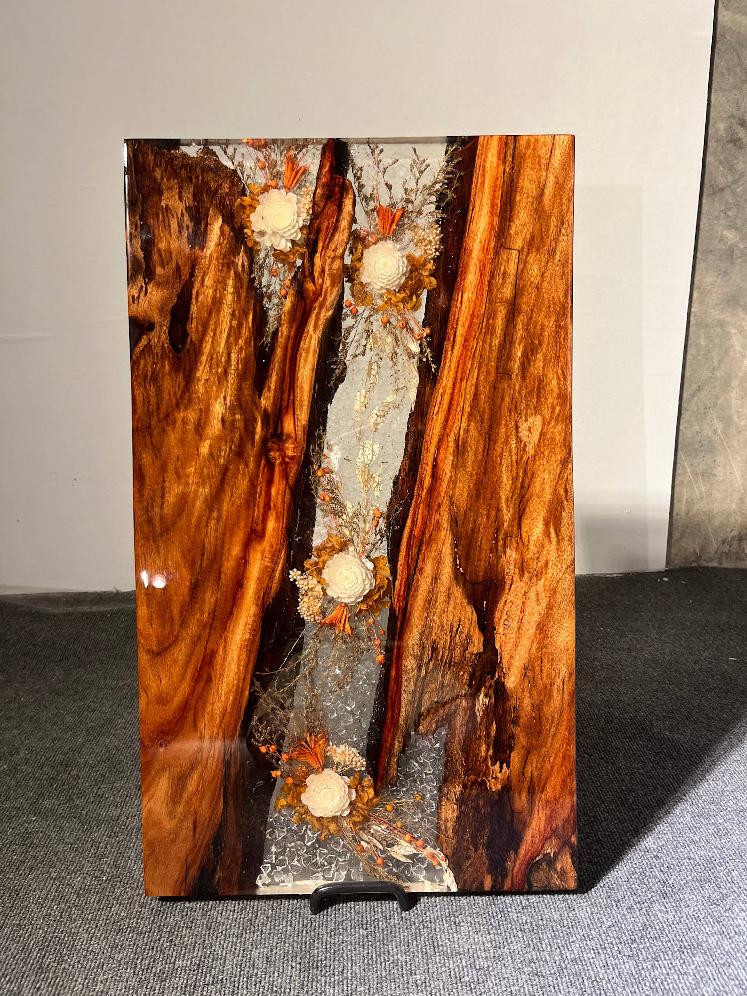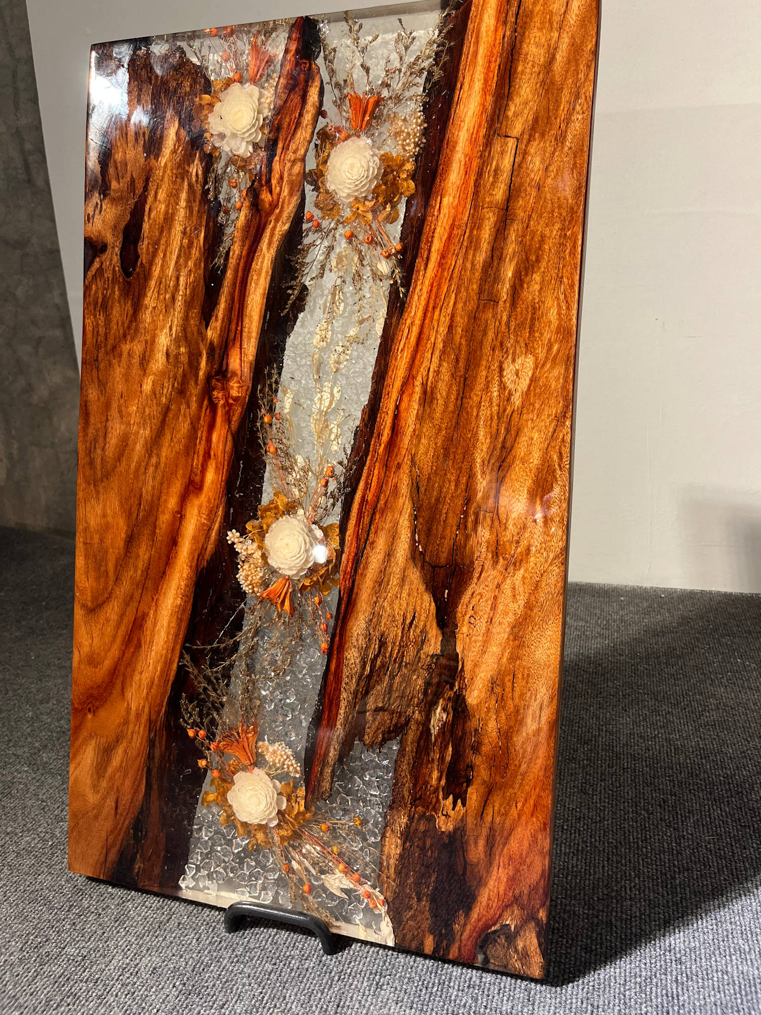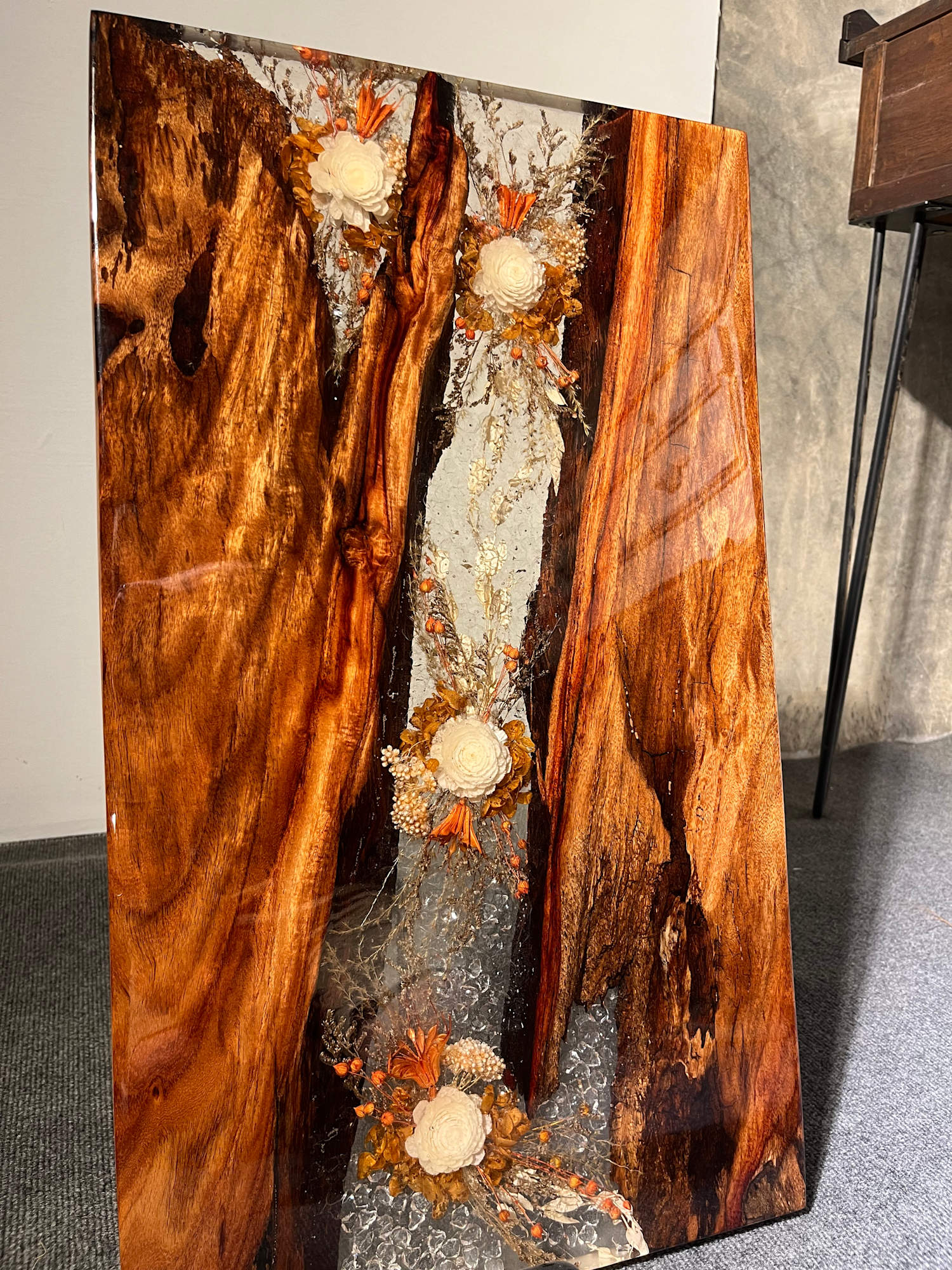 A gentle drift of blossoms glides across an eggshell resin field, now enhanced with a high-gloss finish that magnifies the crystal textures and delicate florals. Light dances across the surface, adding a dreamlike shimmer to the scene. Suspended in mid-air, each bloom feels like a moment paused — a meditation on the space between presence and memory.
