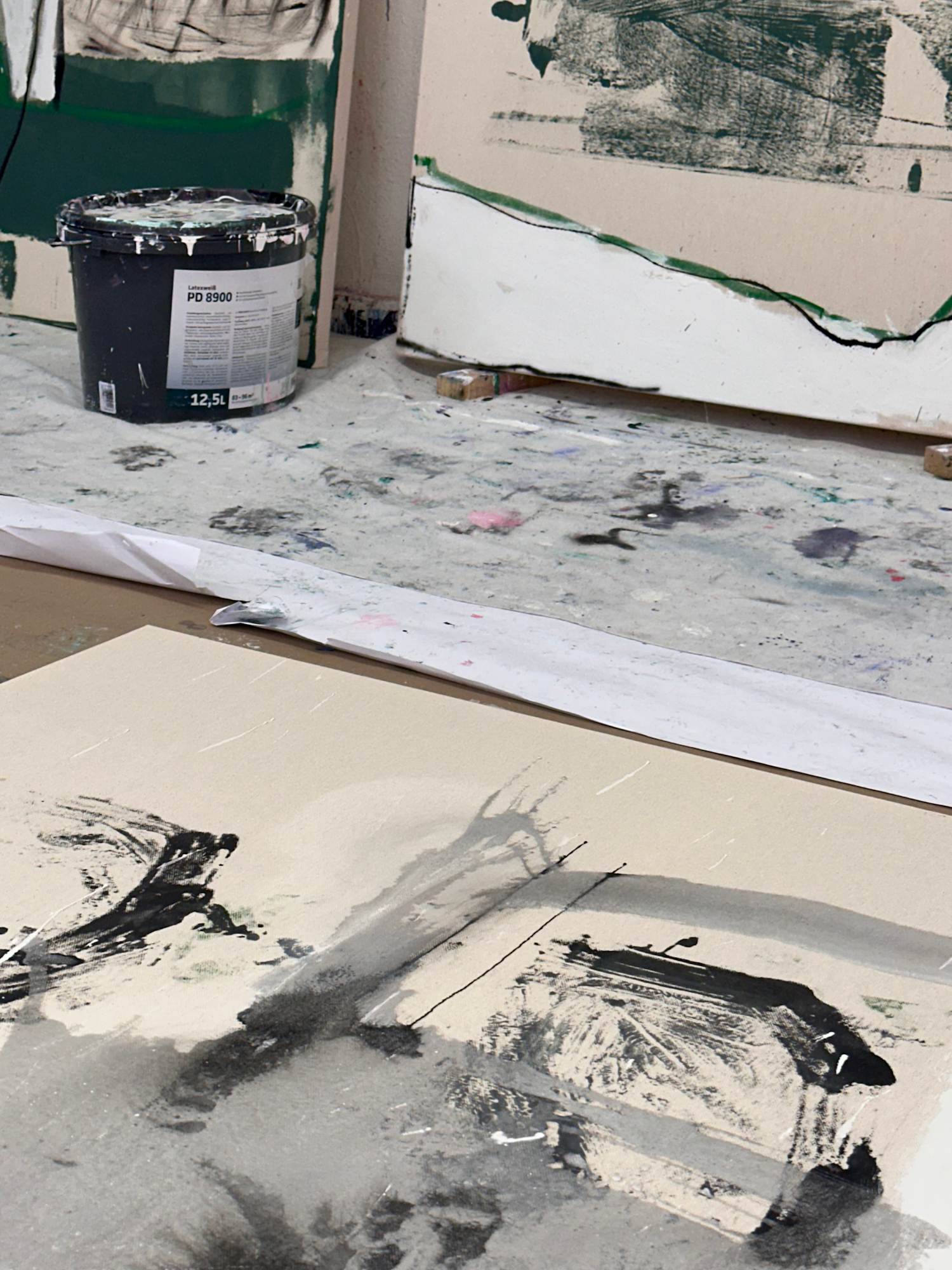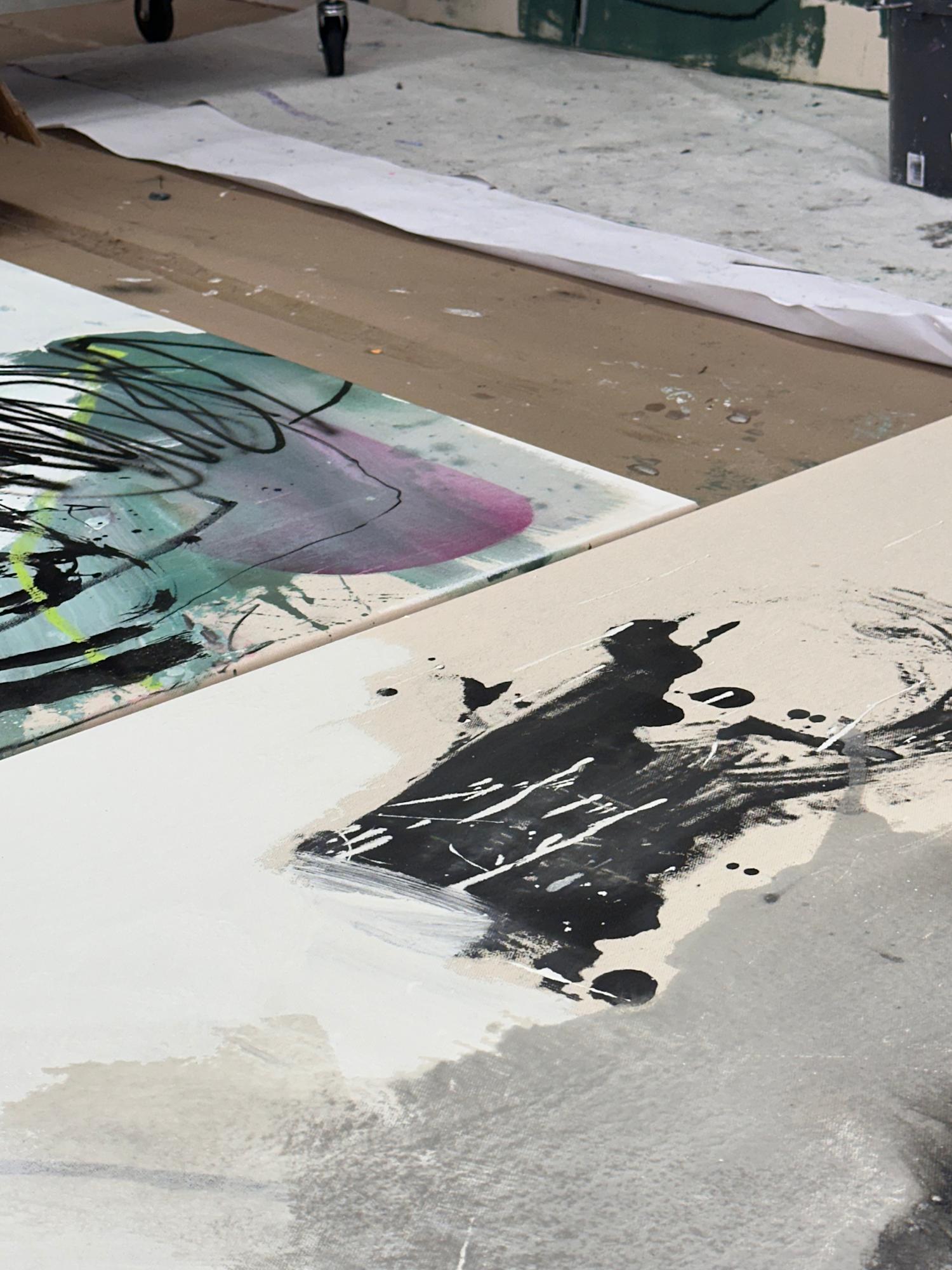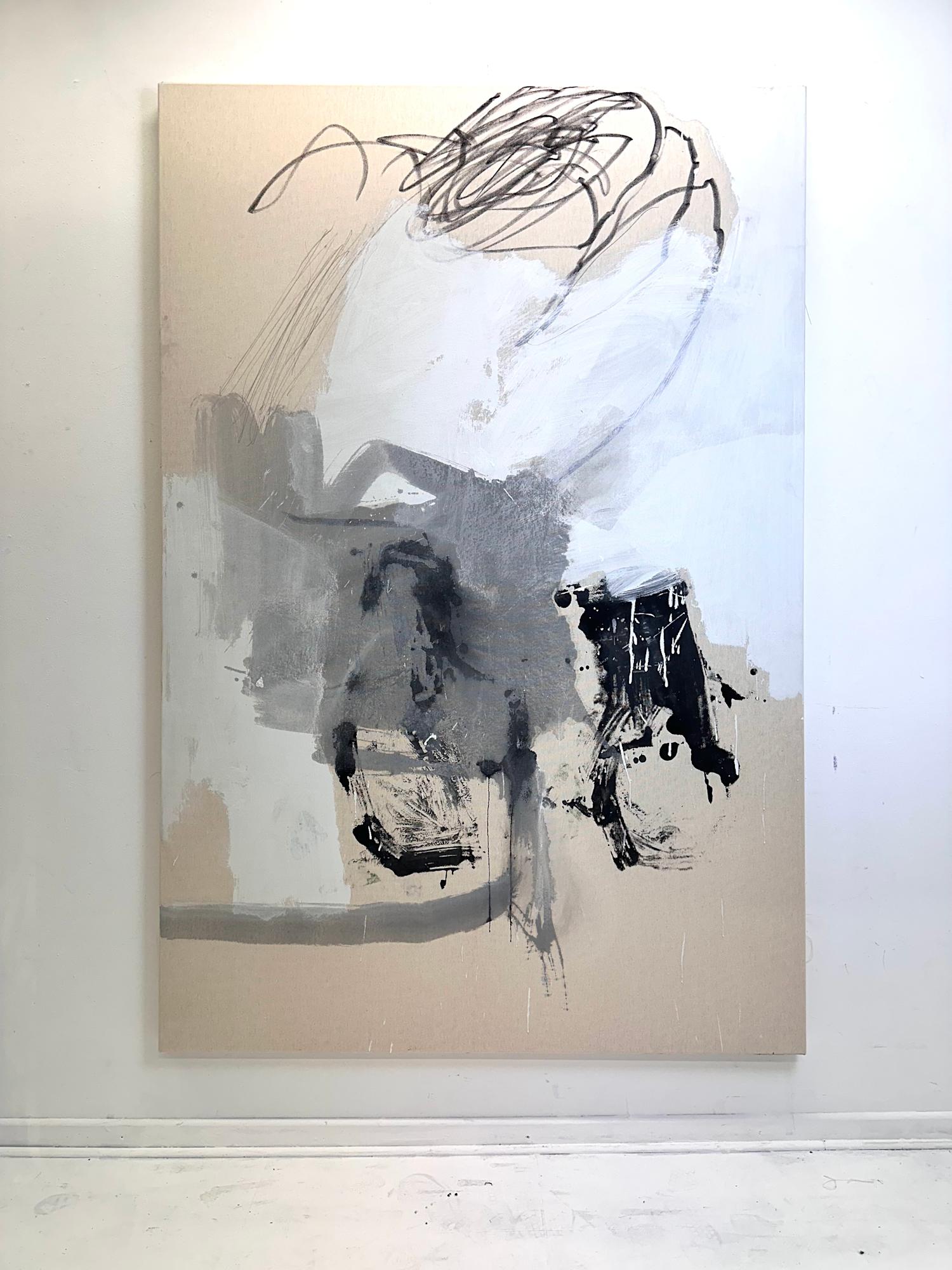 Working on raw, unprimed linen allows the material itself to remain visible, almost like a skin that breathes through the pigments. This decision is central to my practice: the surface is not a neutral backdrop, but an active participant in the dialogue between structure and openness, permanence and fragility.