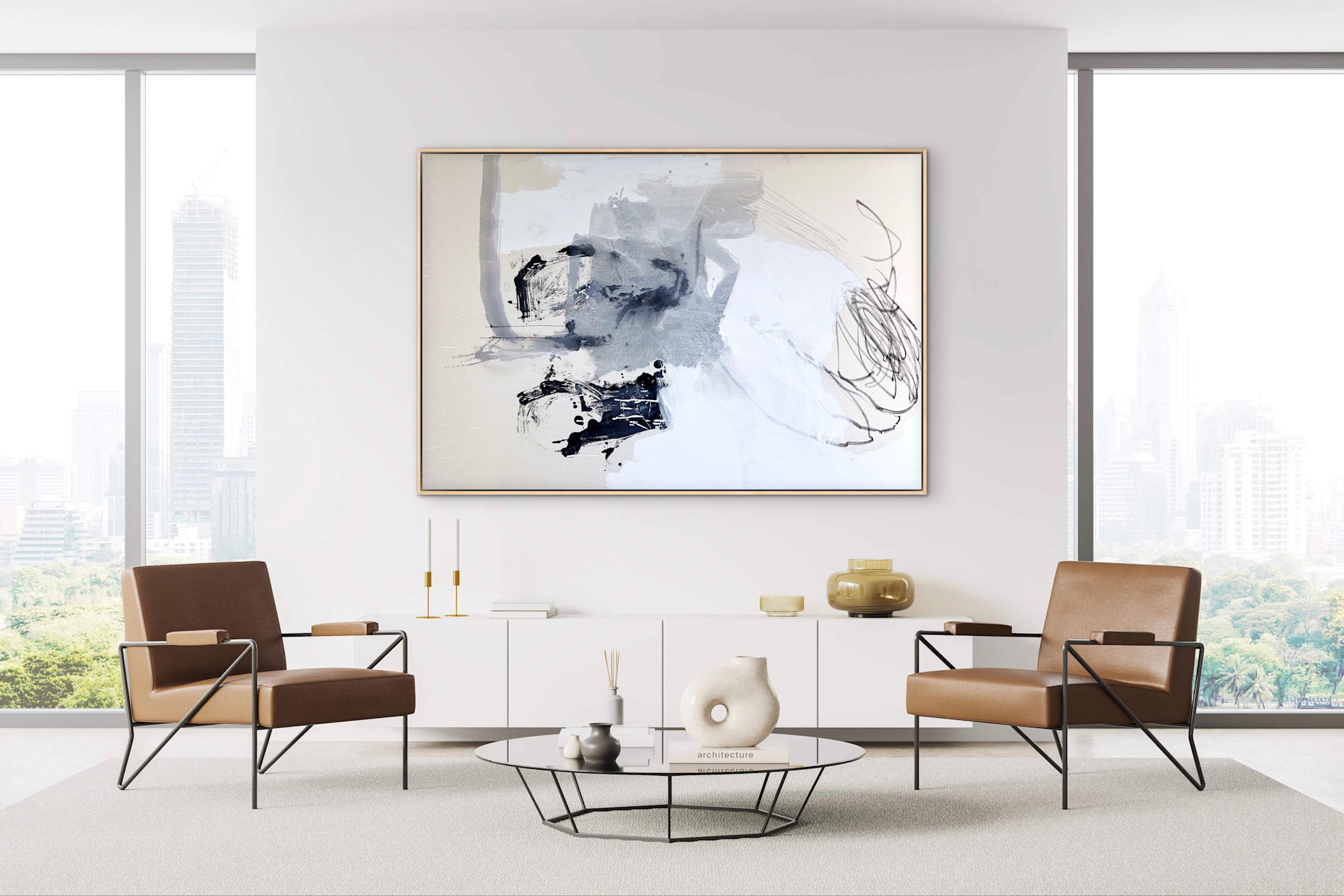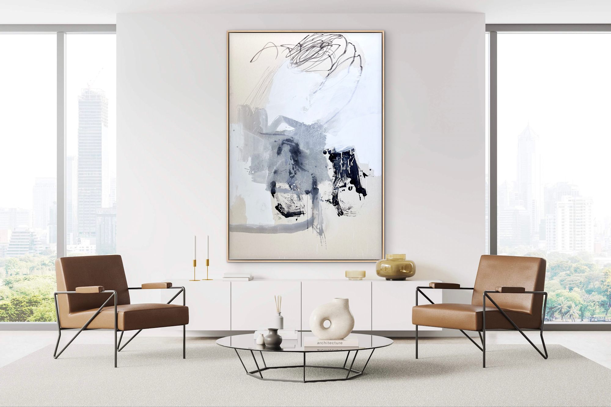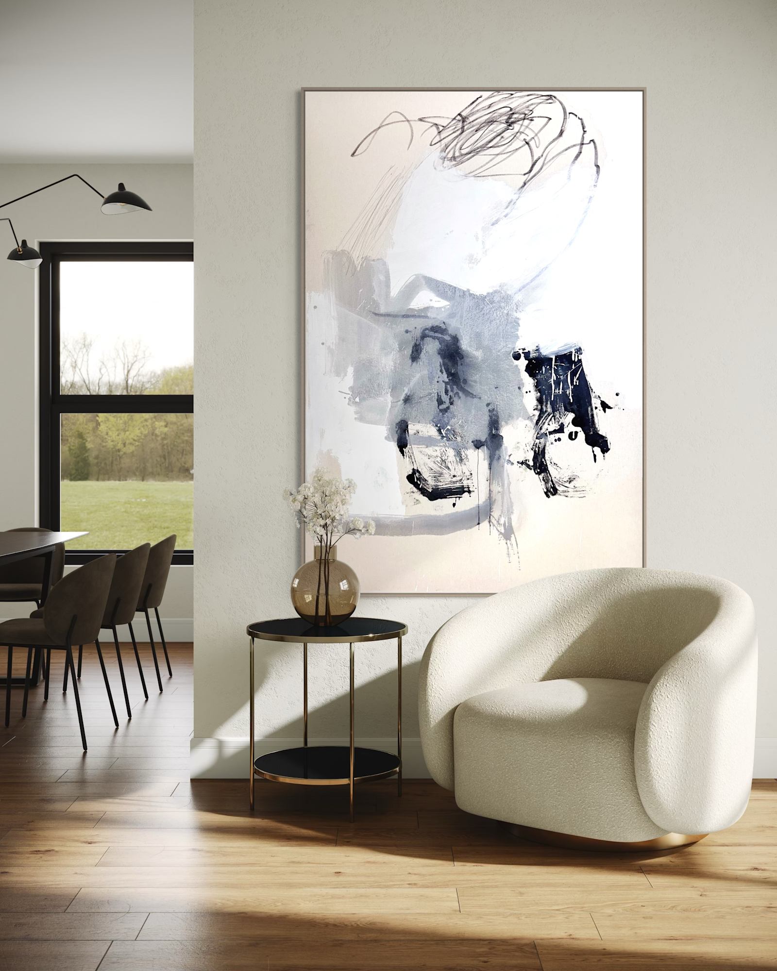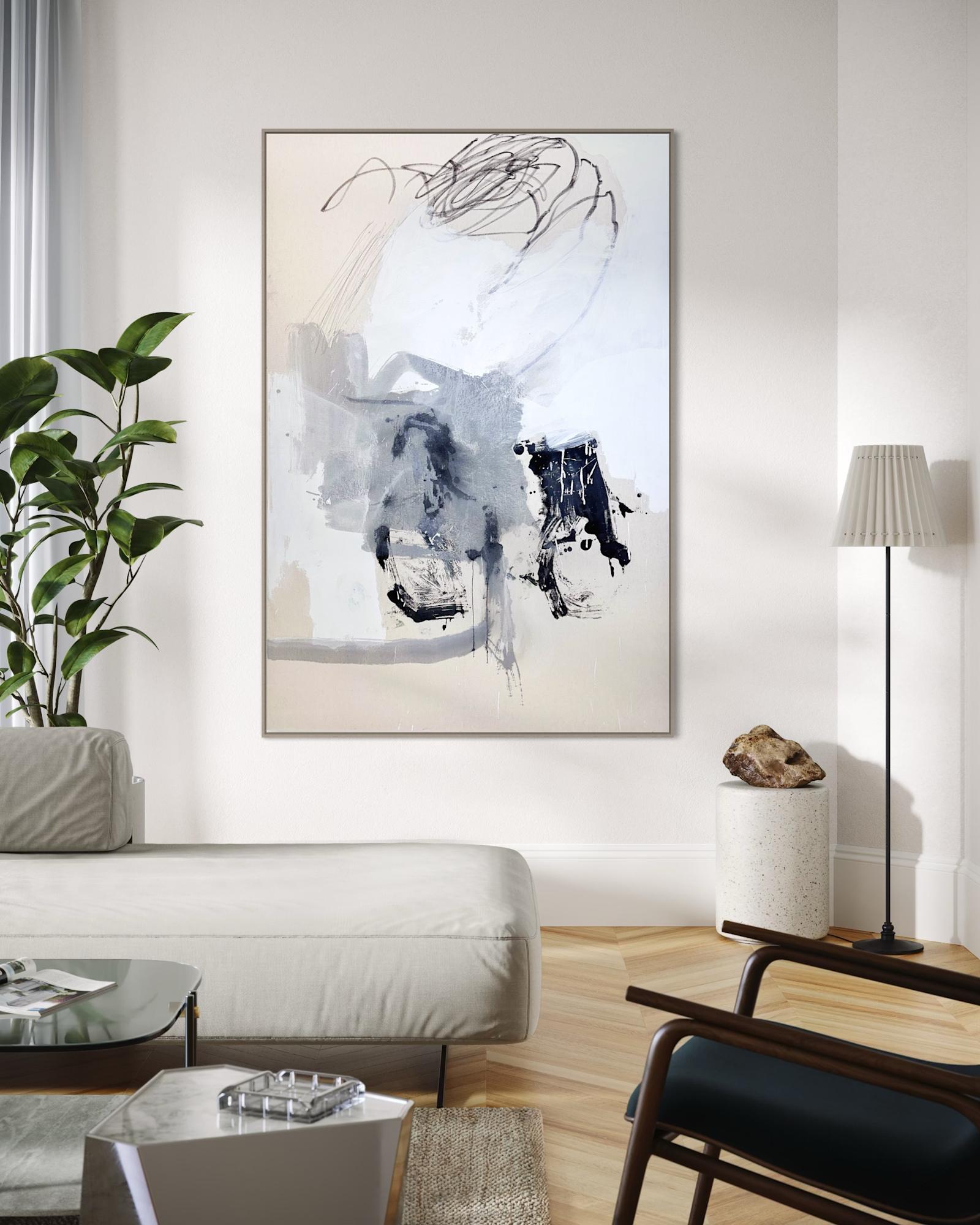 Layers of Dwelling continues my ongoing exploration of the idea of home — not merely as a physical structure, but as a layered space of memory, belonging, and emotional resonance. Architectural traces emerge through gestural lines, as if floor plans, walls, or urban grids had been embedded into the canvas, while translucent washes and fragile marks point to the impermanence of lived experience.