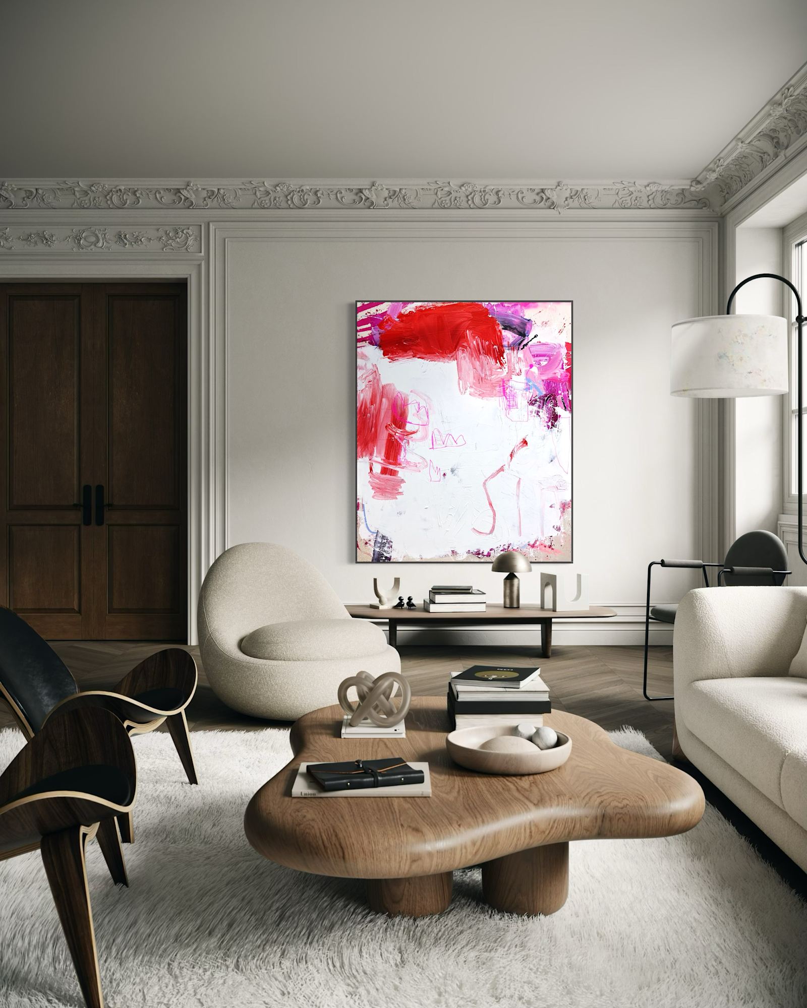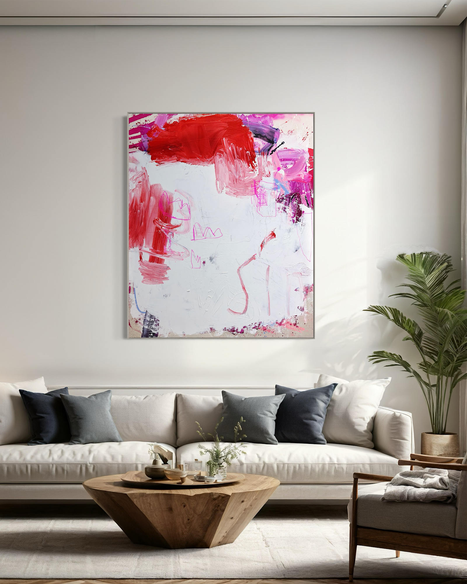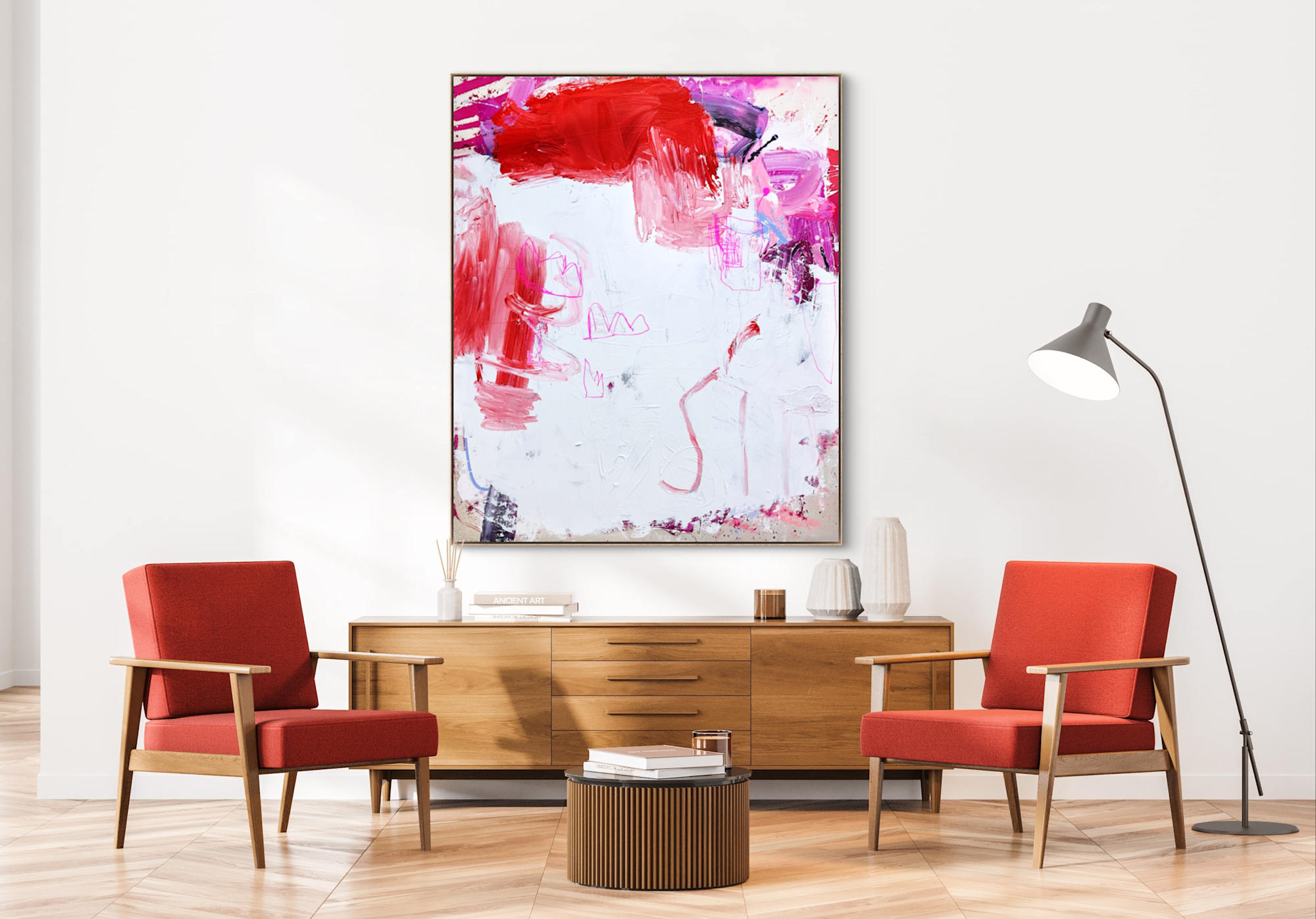 • Acrylics, oil, spray paint, marker, ink on raw canvas