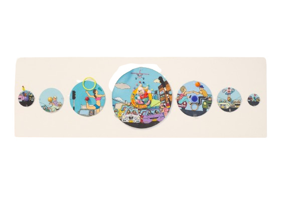 - Ensamble con materiales reciclados de acrílico sobre CD y LP
