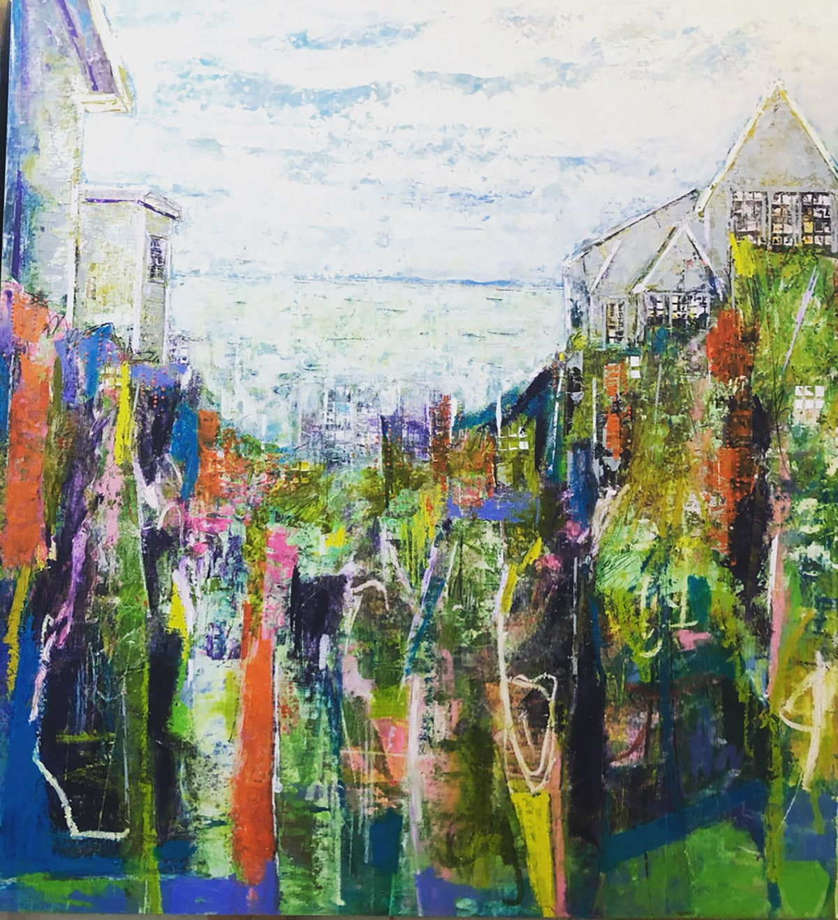 I love paint. I paint with oil and cold wax in a studio overlooking Lake Michigan.