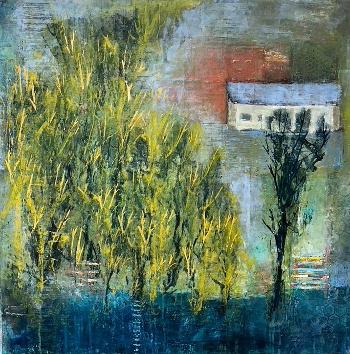 I love paint. I paint with oil and cold wax in a studio overlooking Lake Michigan.