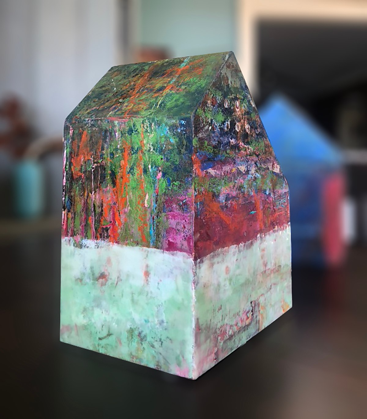I love paint. I paint with oil and cold wax in a studio overlooking Lake Michigan.