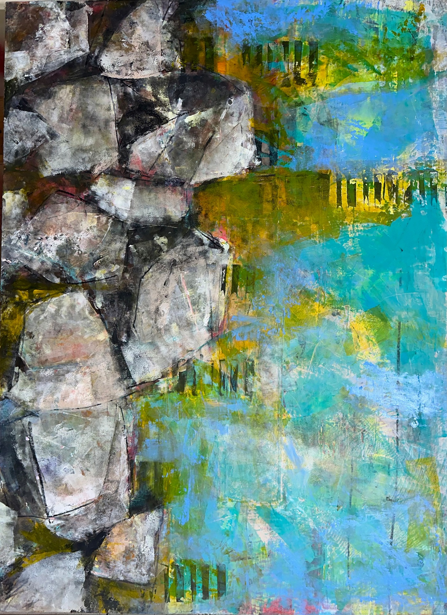 I love paint. I paint with oil and cold wax in a studio overlooking Lake Michigan.