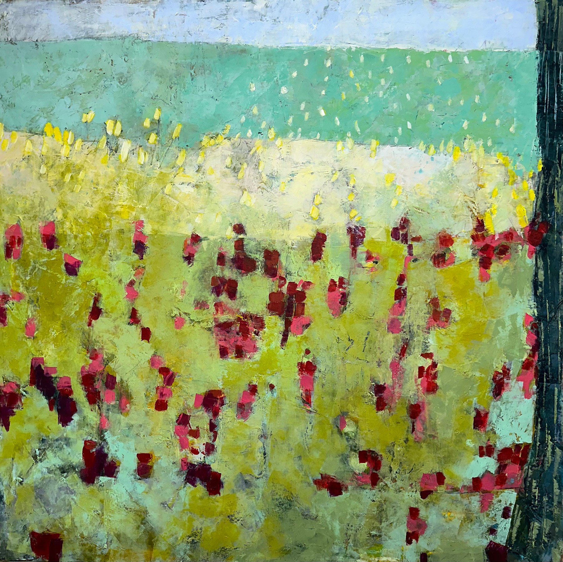 I love paint. I paint with oil and cold wax in a studio overlooking Lake Michigan.
