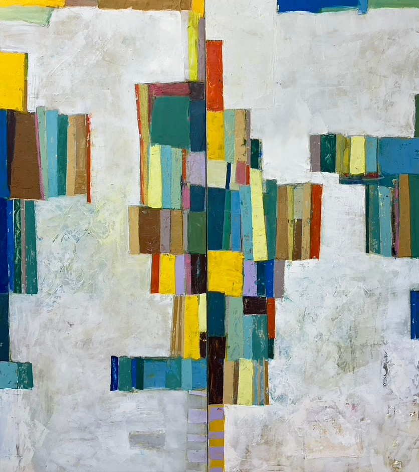 I love paint. I paint with oil and cold wax in a studio overlooking Lake Michigan.
