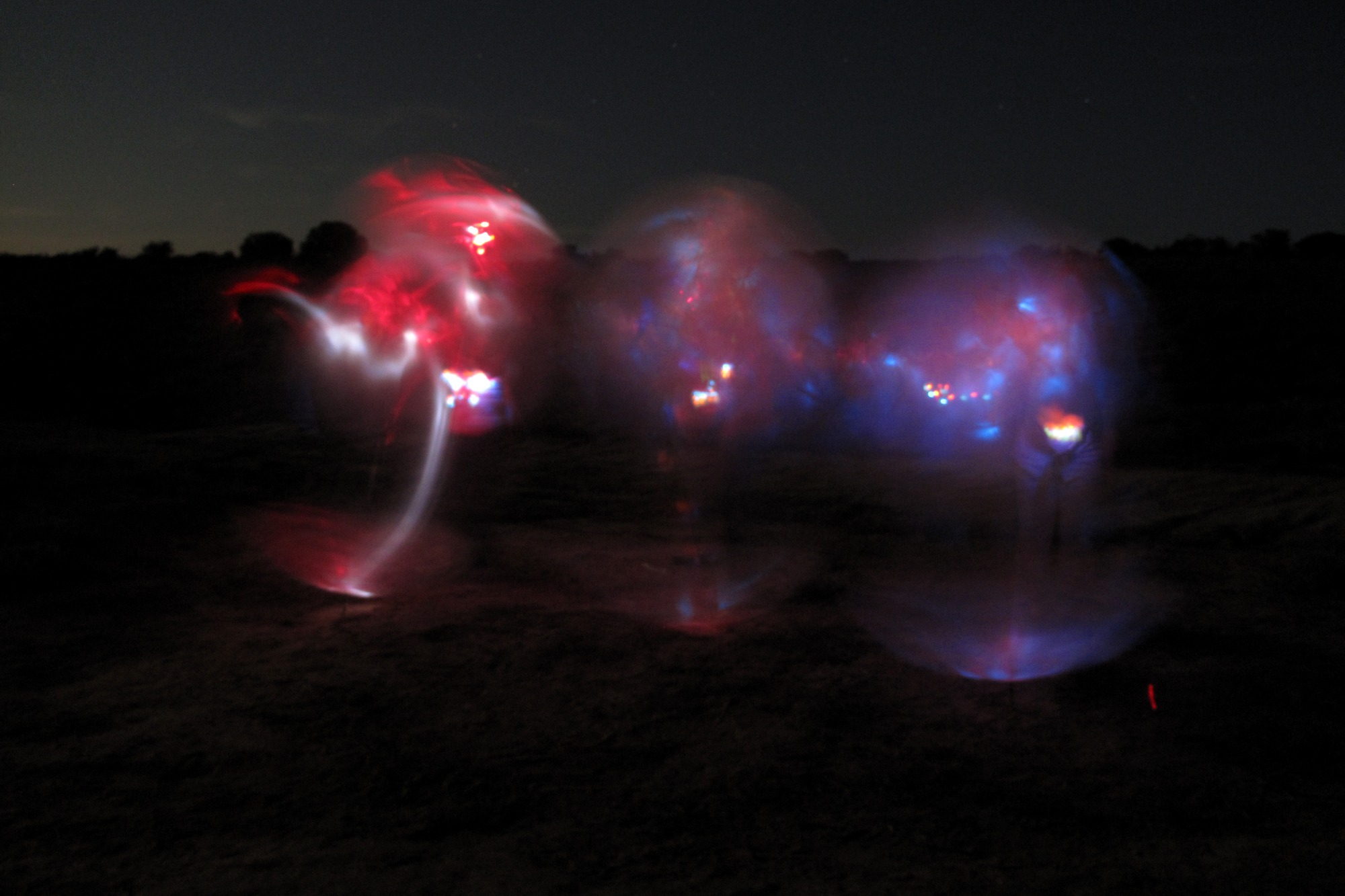 Military base youth draw with light; a collaborative project for the KKNK Festival with Bronwyn Lace; LED and rope lights; Oudtshoorn, South Africa.