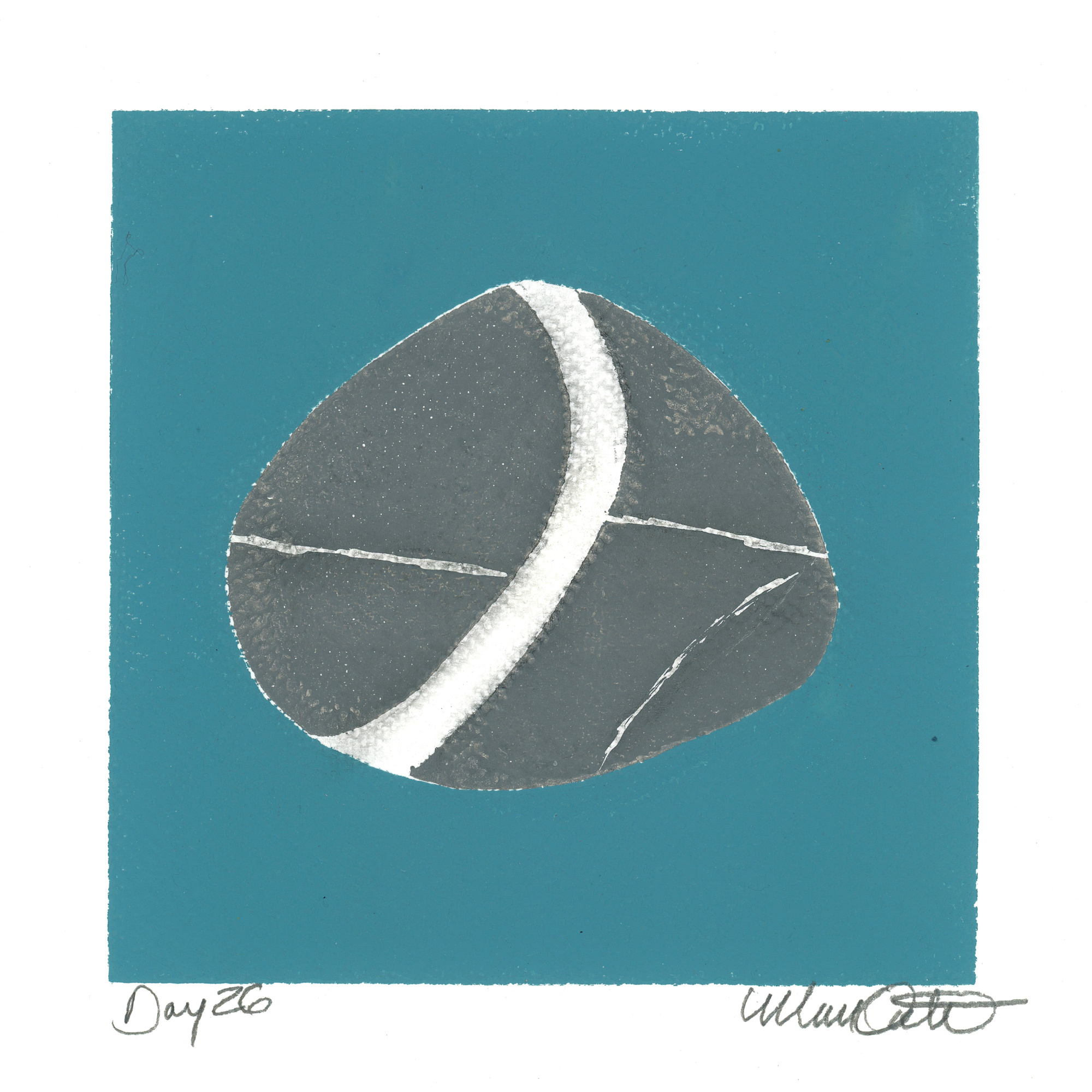 Each piece during this project was based on a rock from my collection. Stencils were created based on the shape of each rock. In addition to acrylic paint, other media used in the printing process for this collection included soft pastel, charcoal, graphite, oil pastel, and acrylic marker.