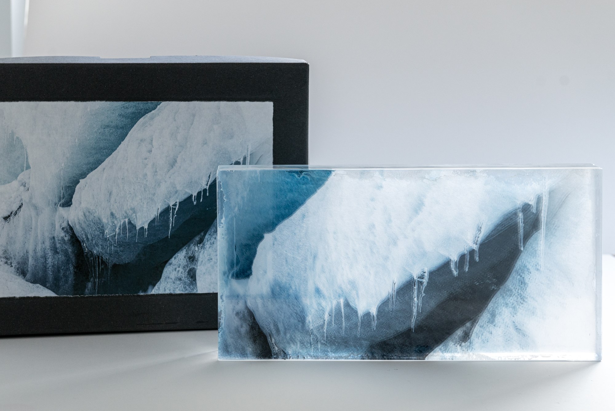 • Layered sculpture, consisting of printed transparents & 10gs washi paper, cast with resin