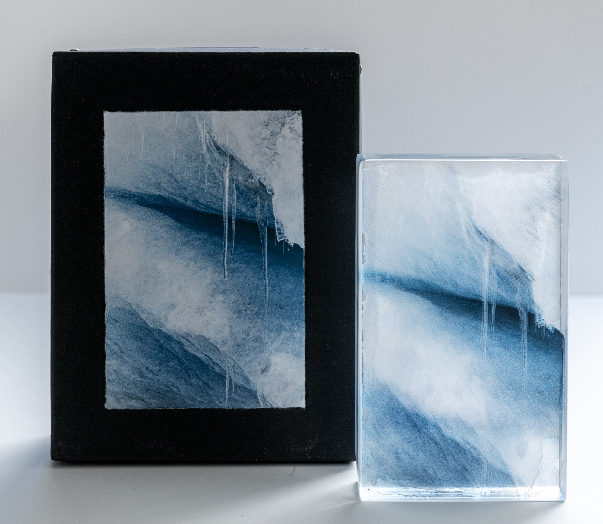 • Layered sculpture, consisting of printed transparents & 10gs washi paper, cast with resin