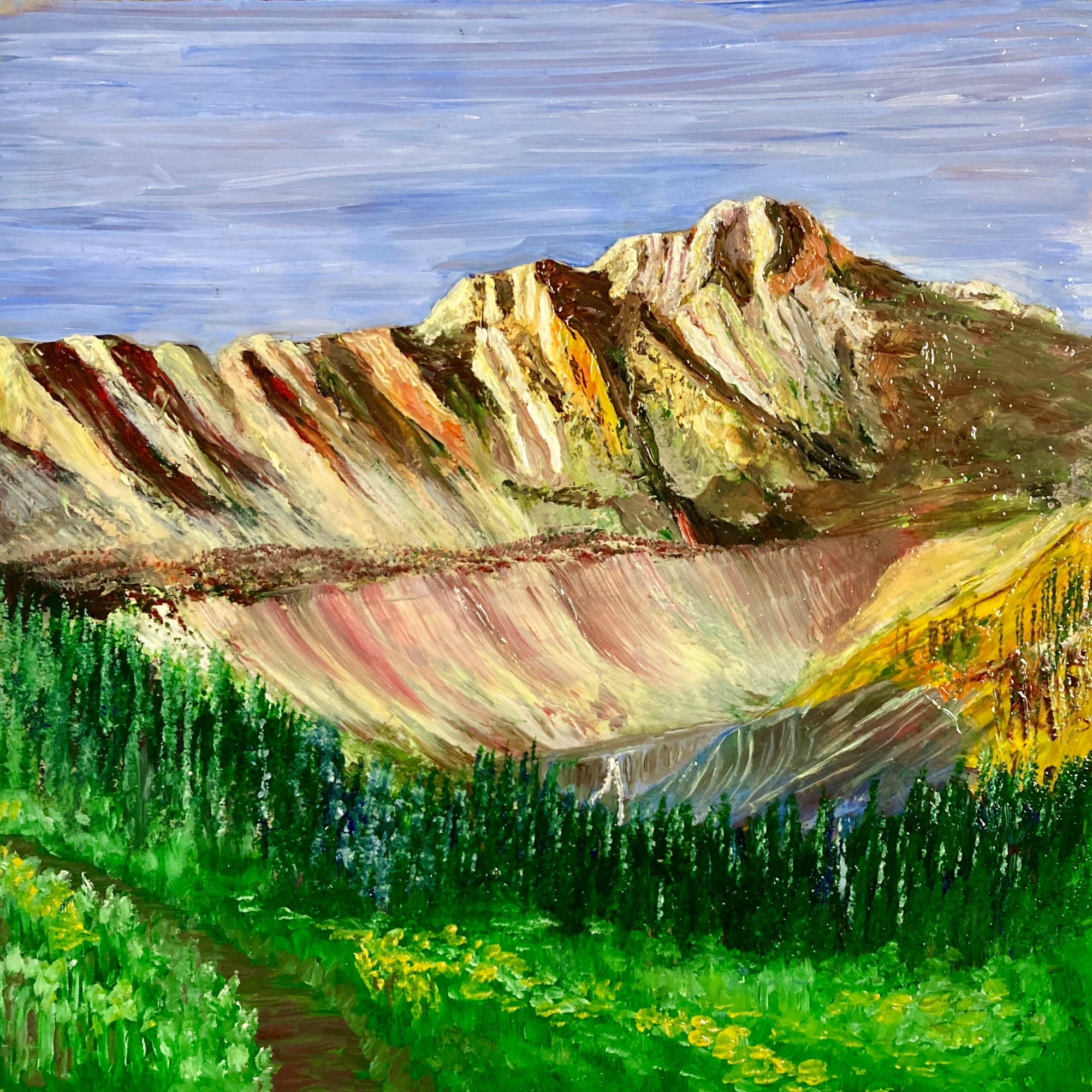 My husband has completed all the #14ers and asked me to paint this from a photo reference. I’ve hiked most of the easy ones but can’t imagine being on Class 3+. Perhaps I’ll have to hike into just this beautiful basin. Oil on 12x12” paper. Digital prints up to 15” $50. available. Several filters available.