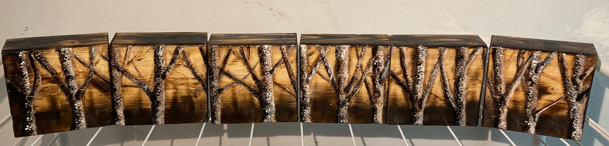 Pack of 5 for $40 or singles $7 each. 4x4x1.5” on solid pine wood.