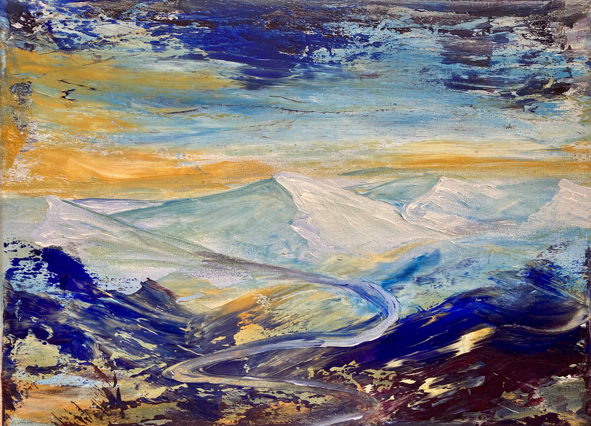 Acrylic, resin, ink, portrait, digital artist. Inspired by my home in the Colorado mountains.