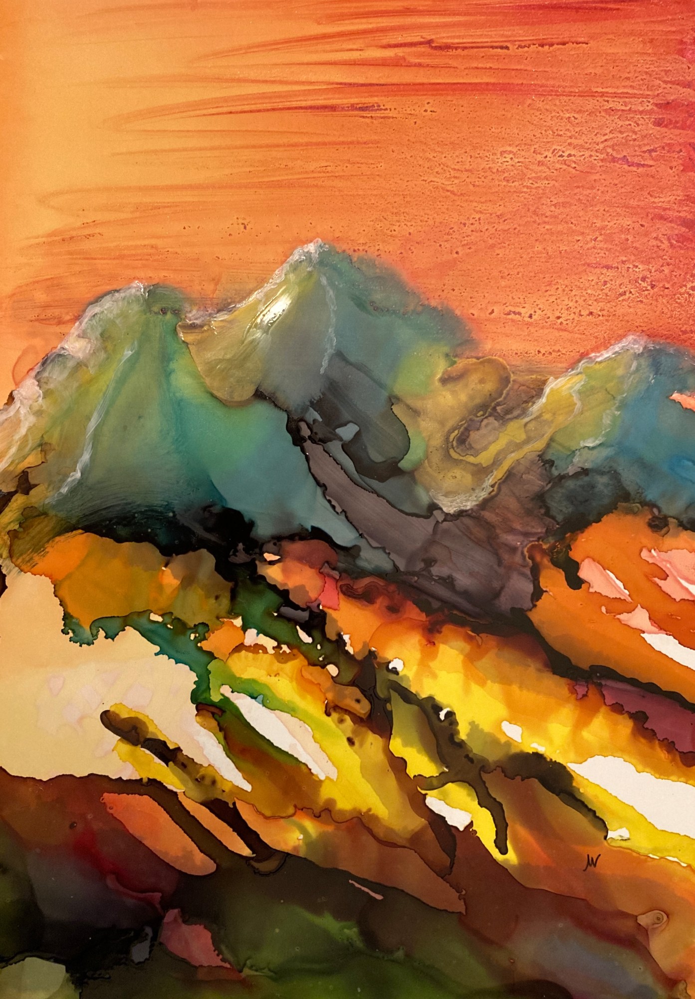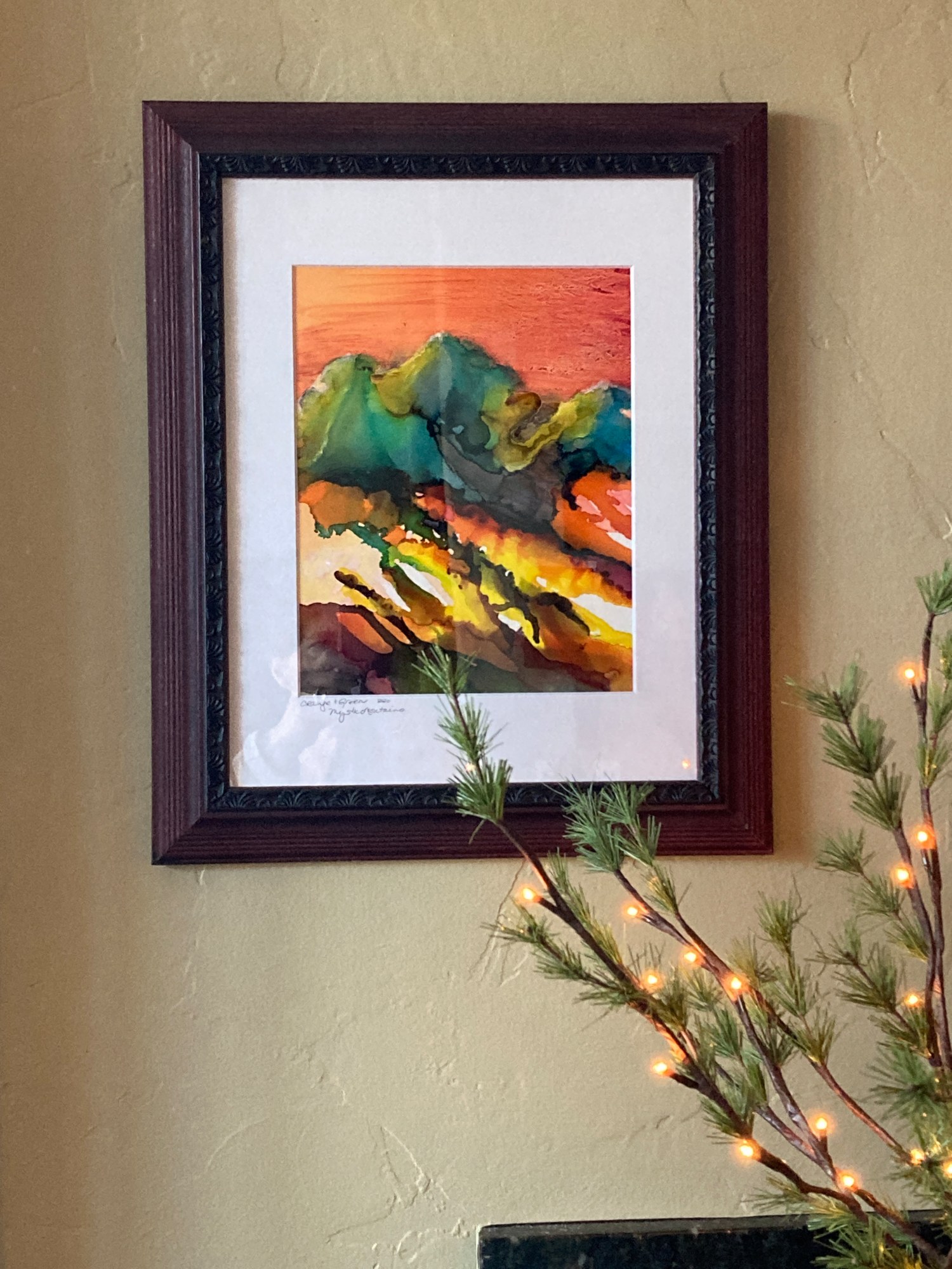 Fun one depicting the feel of the back country. Original alcohol ink 8x10. Digital copies up to 40” print. Finished with high gloss varnish.