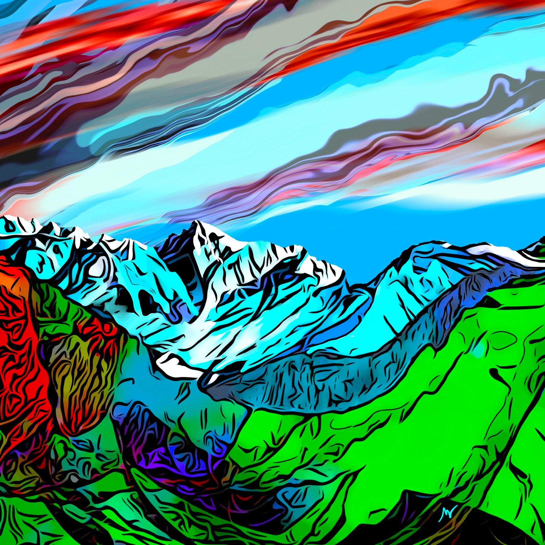 This one is pretty bold. I’m not sure where it started but this is where it ended. Or maybe this is the start. Thinking this might be a good subject for metallic print or maybe acrylic. Will see where it takes me. I just let the art come at me without forcing it in a certain direction. Digital print on any surface any size. Color variations available.