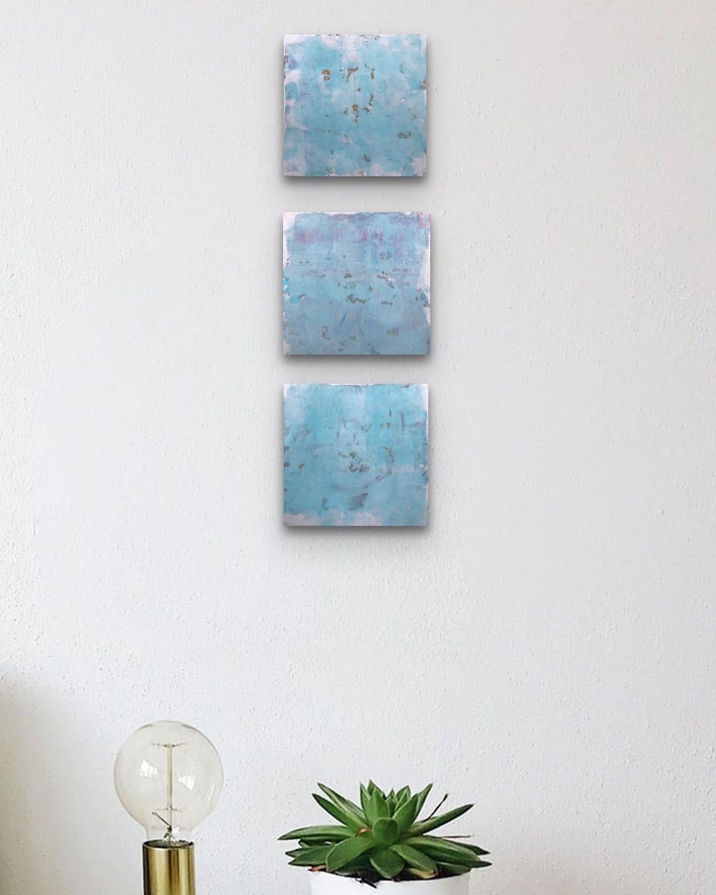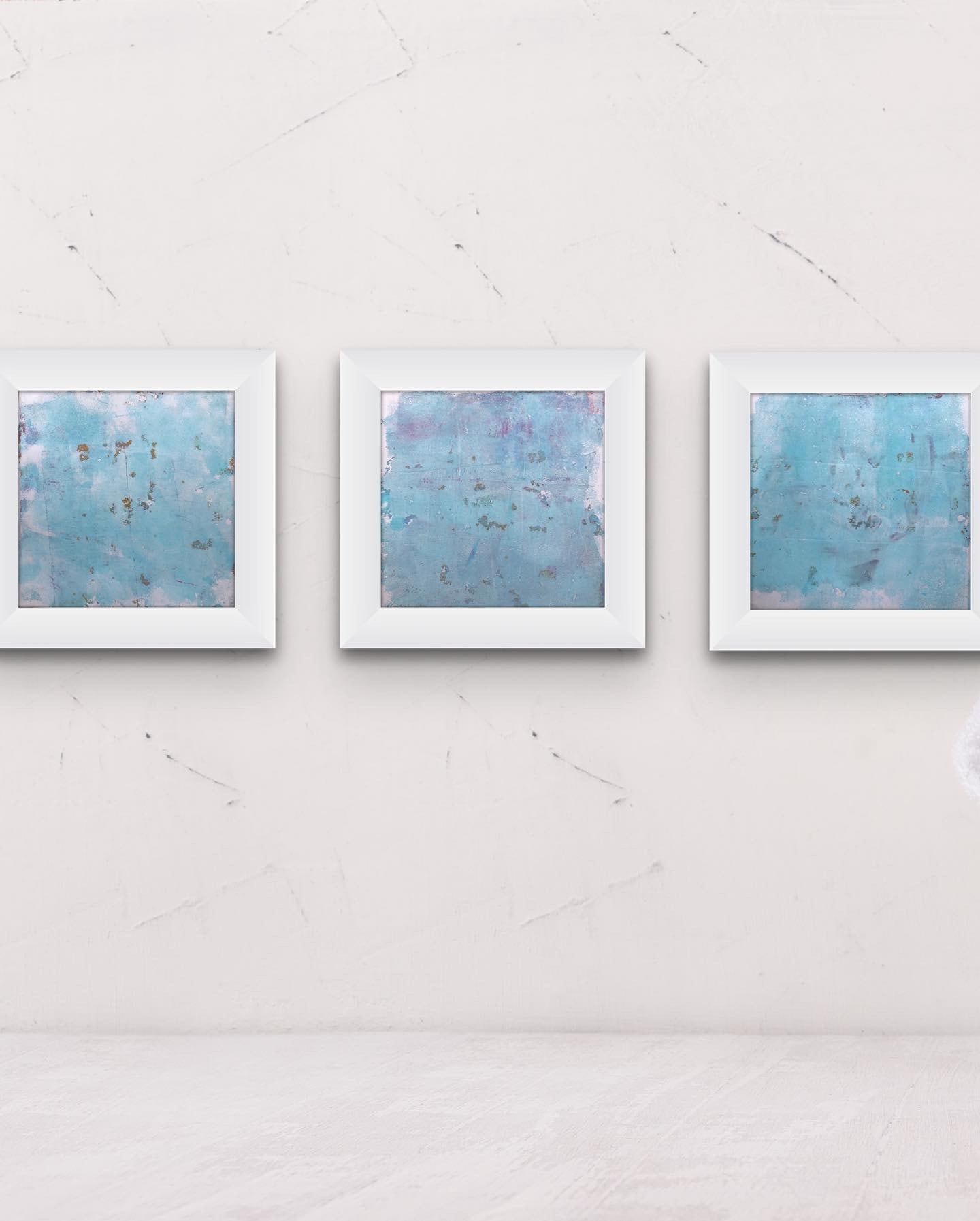 This set contains the three pieces „beachwalk #1, #2 and #3 of the series „beachwalk“. Each of these monotypes on paper is 15x15 cm.