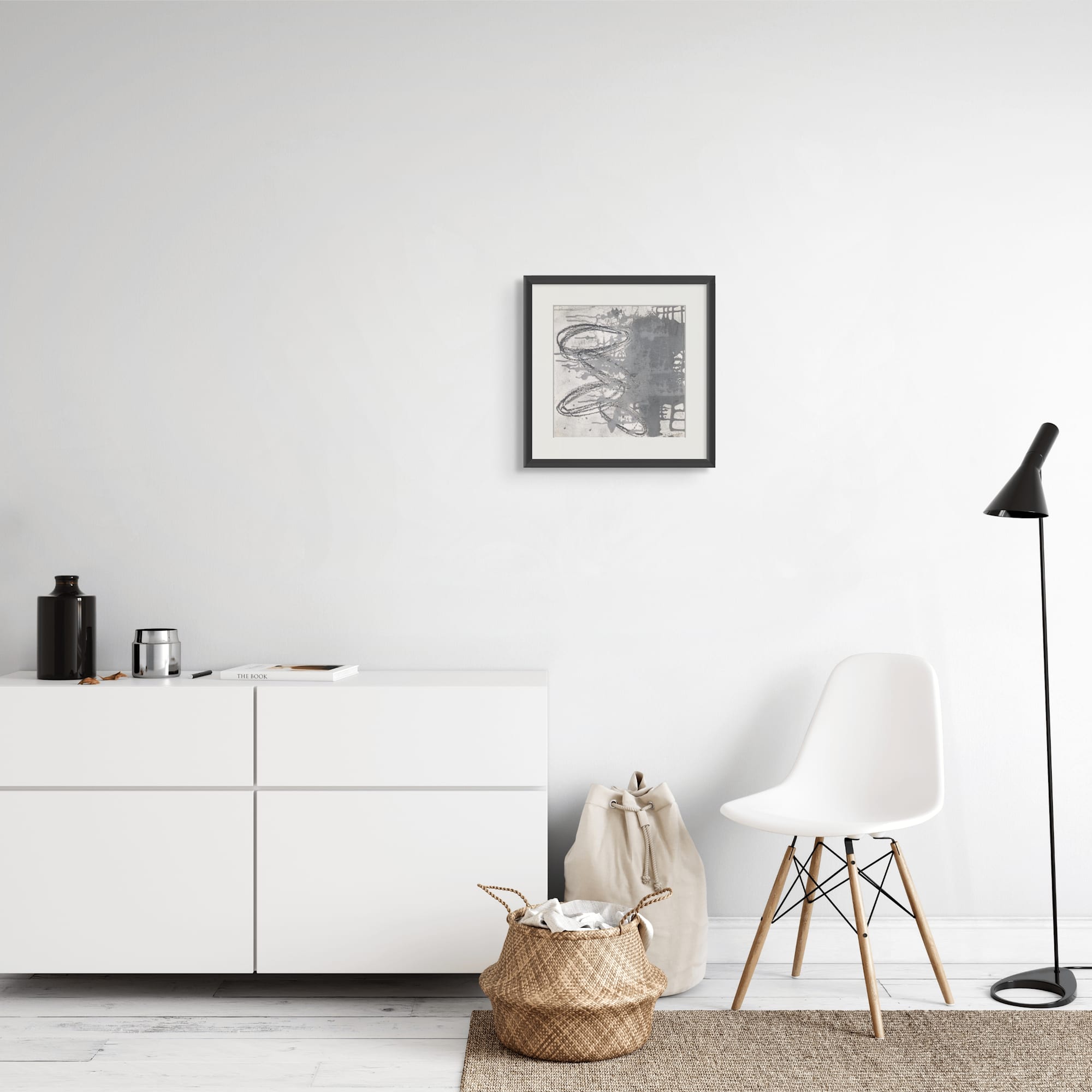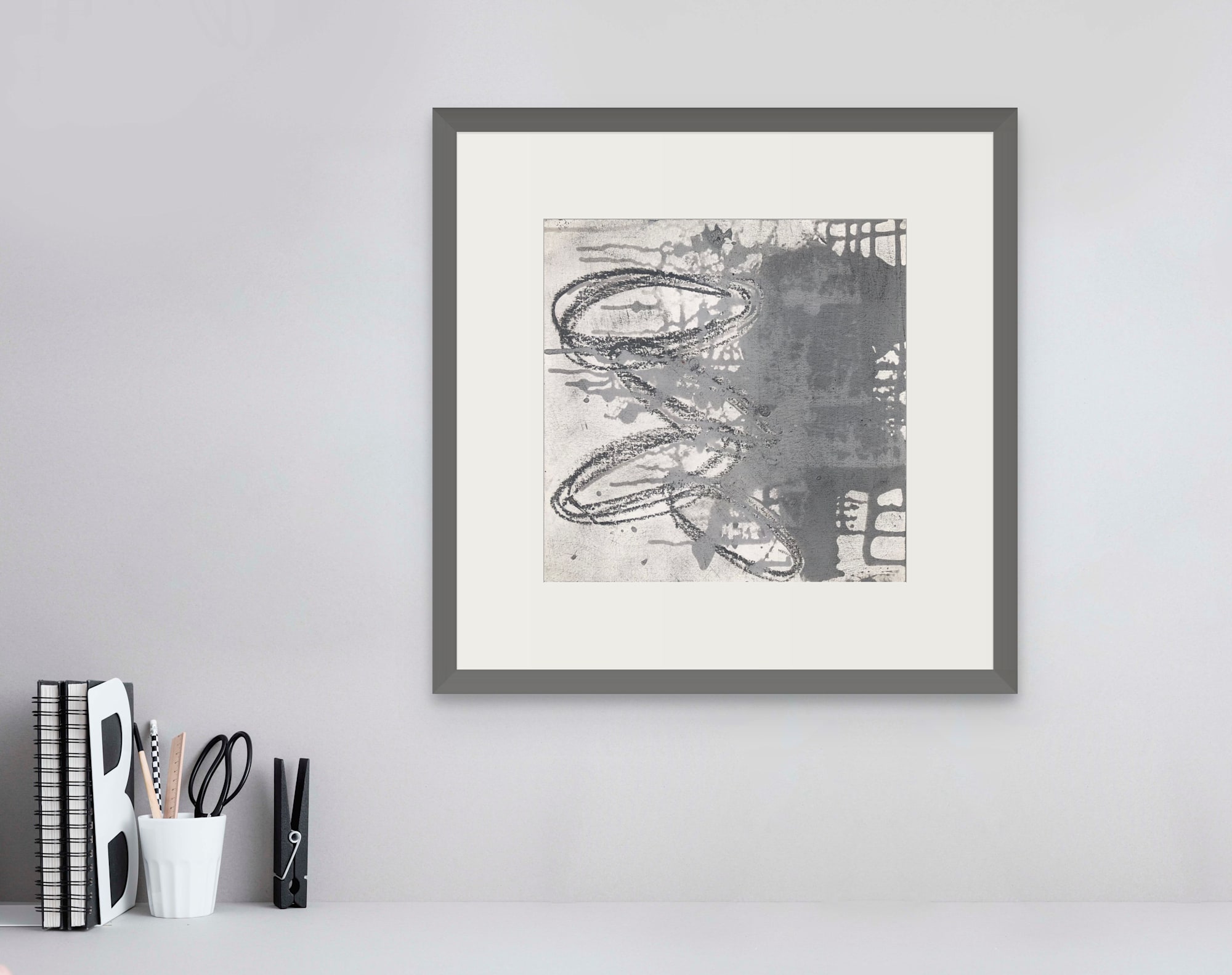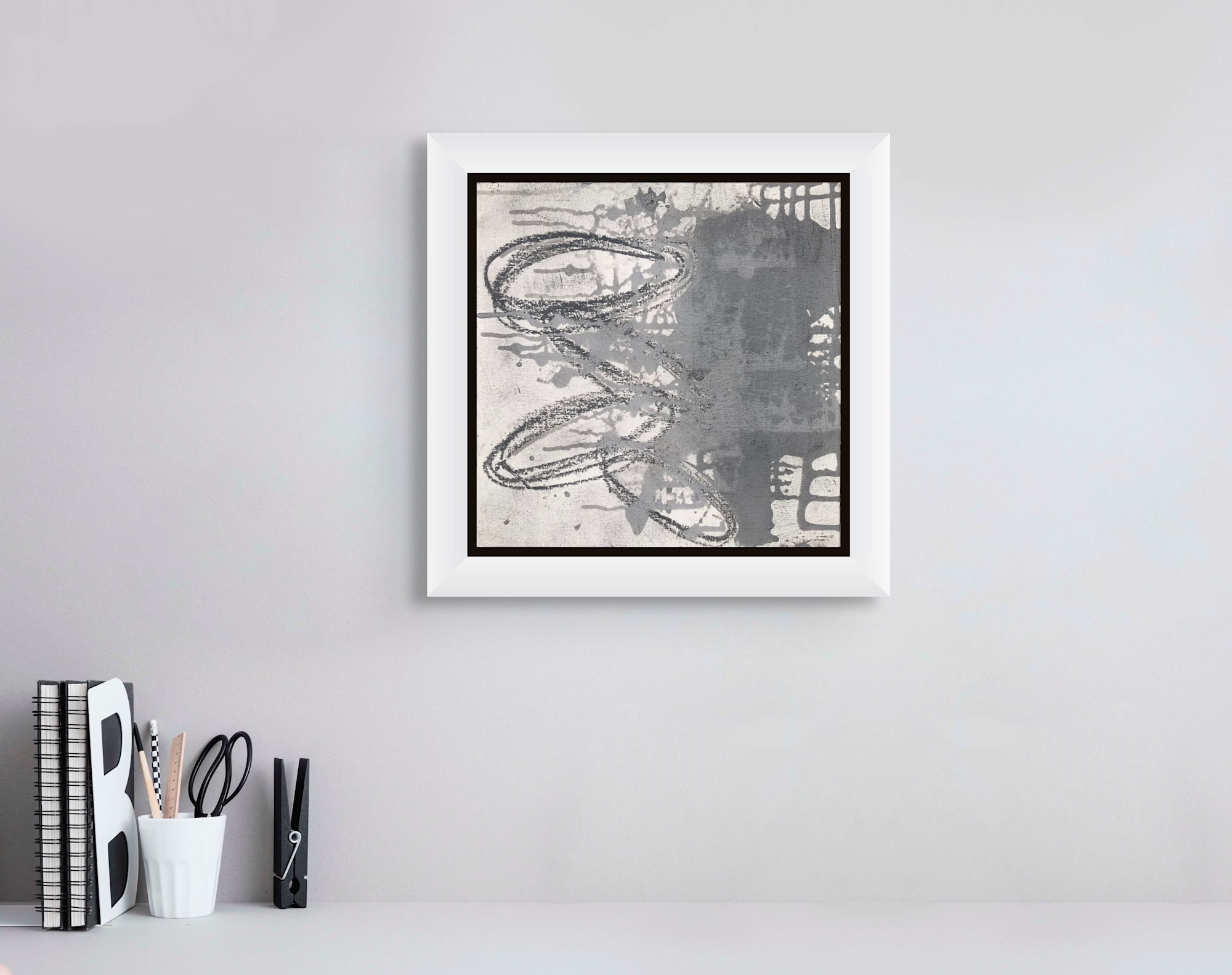 This artwork is an abstract acrylic mixed media piece on primed bookbinding cardboard.