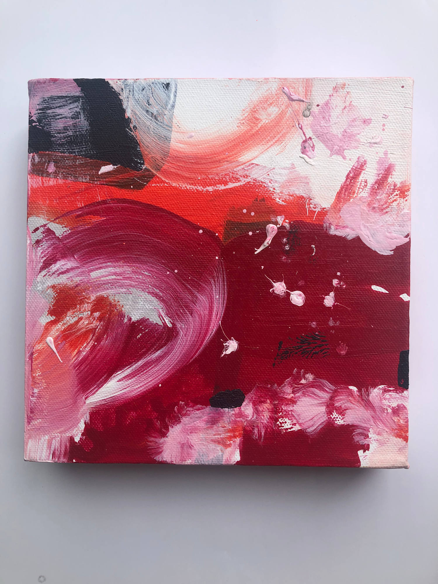 Let me introduce you to the forth piece of the small series „let’s be wild in summer“. This artwork is inspired by the first sunny days this year, painted outside on the balcony and shows the vibrant play of the sun rays, a light summer breeze and the energetic vibes enjoying summer. Looking forward to all those hot days to come, enjoying life with family and friends.