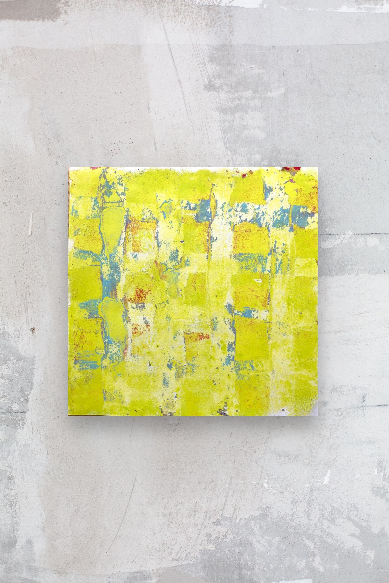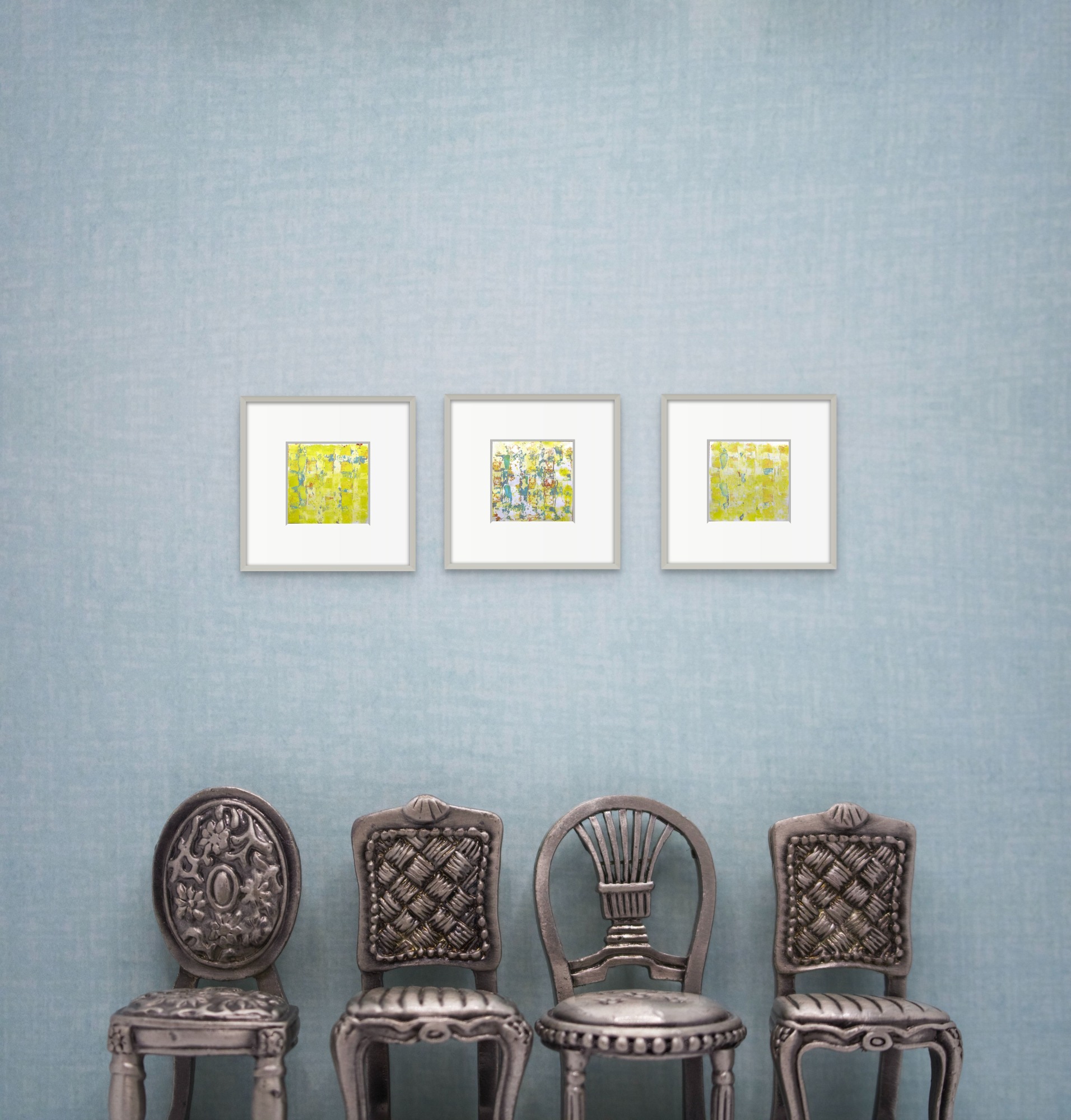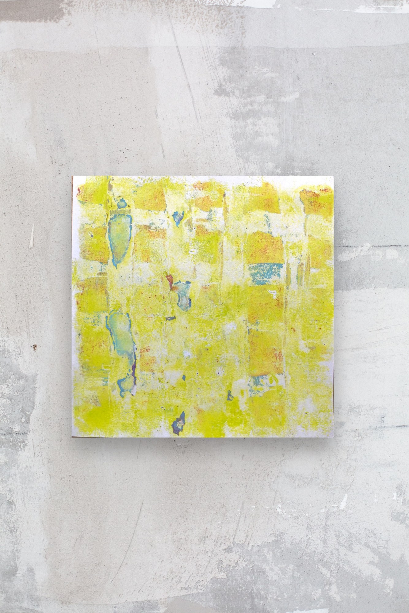 This set contains the three pieces „on the sunny side of life #4, #5 and #6“ of the series „on the sunny side of life“. Each of these monotypes on paper is 15x15 cm.