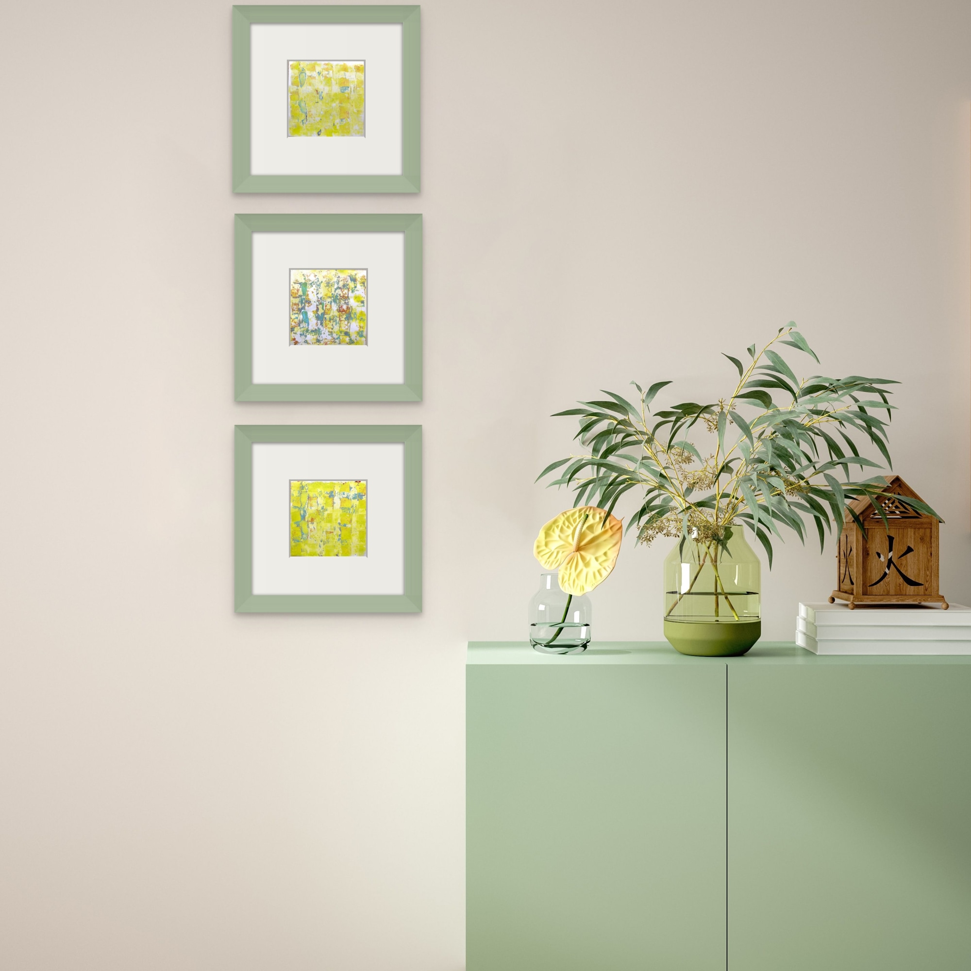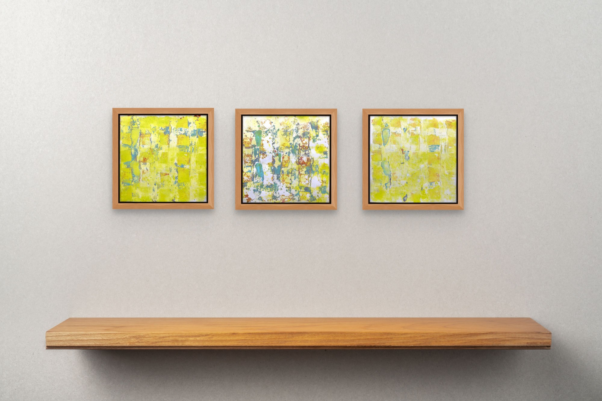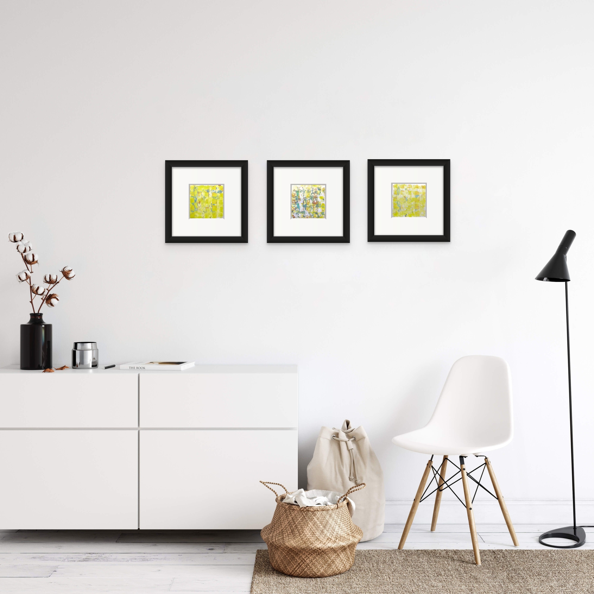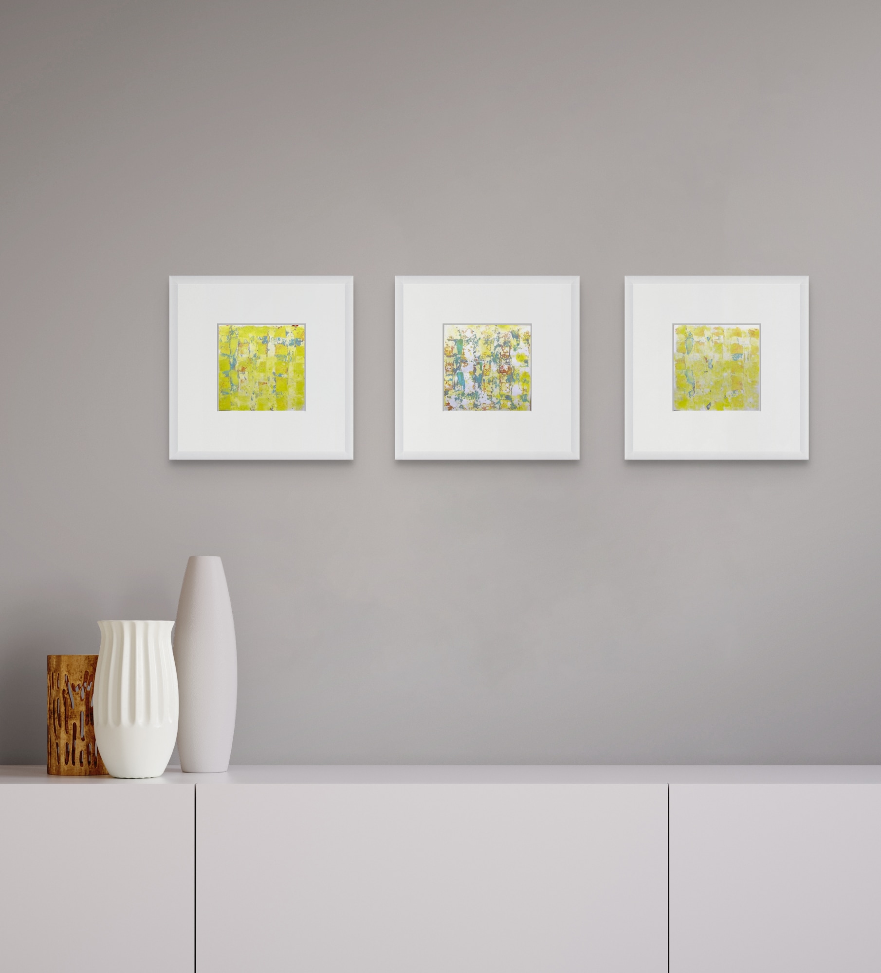 This set contains the three pieces „on the sunny side of life #4, #5 and #6“ of the series „on the sunny side of life“. Each of these monotypes on paper is 15x15 cm.