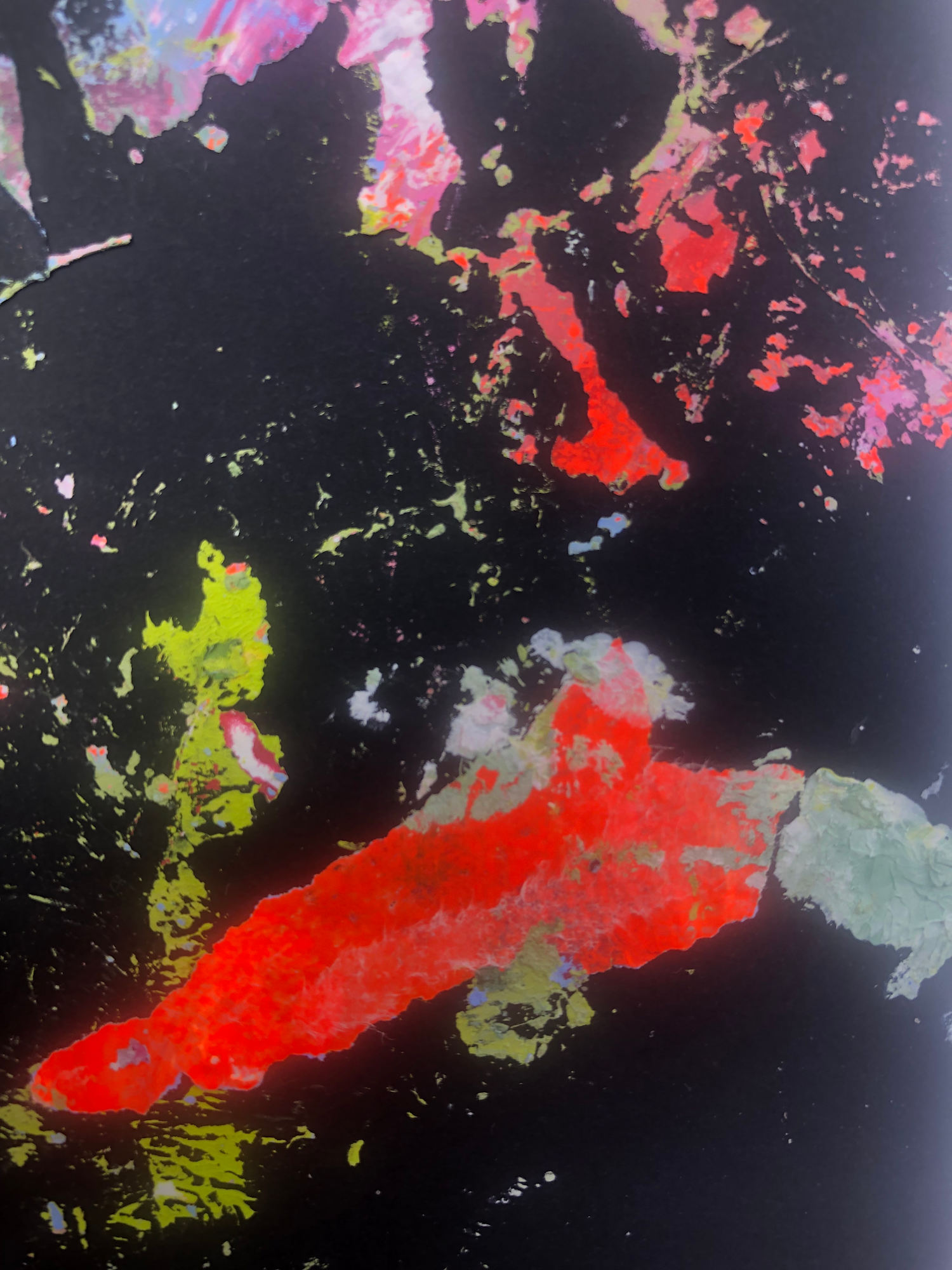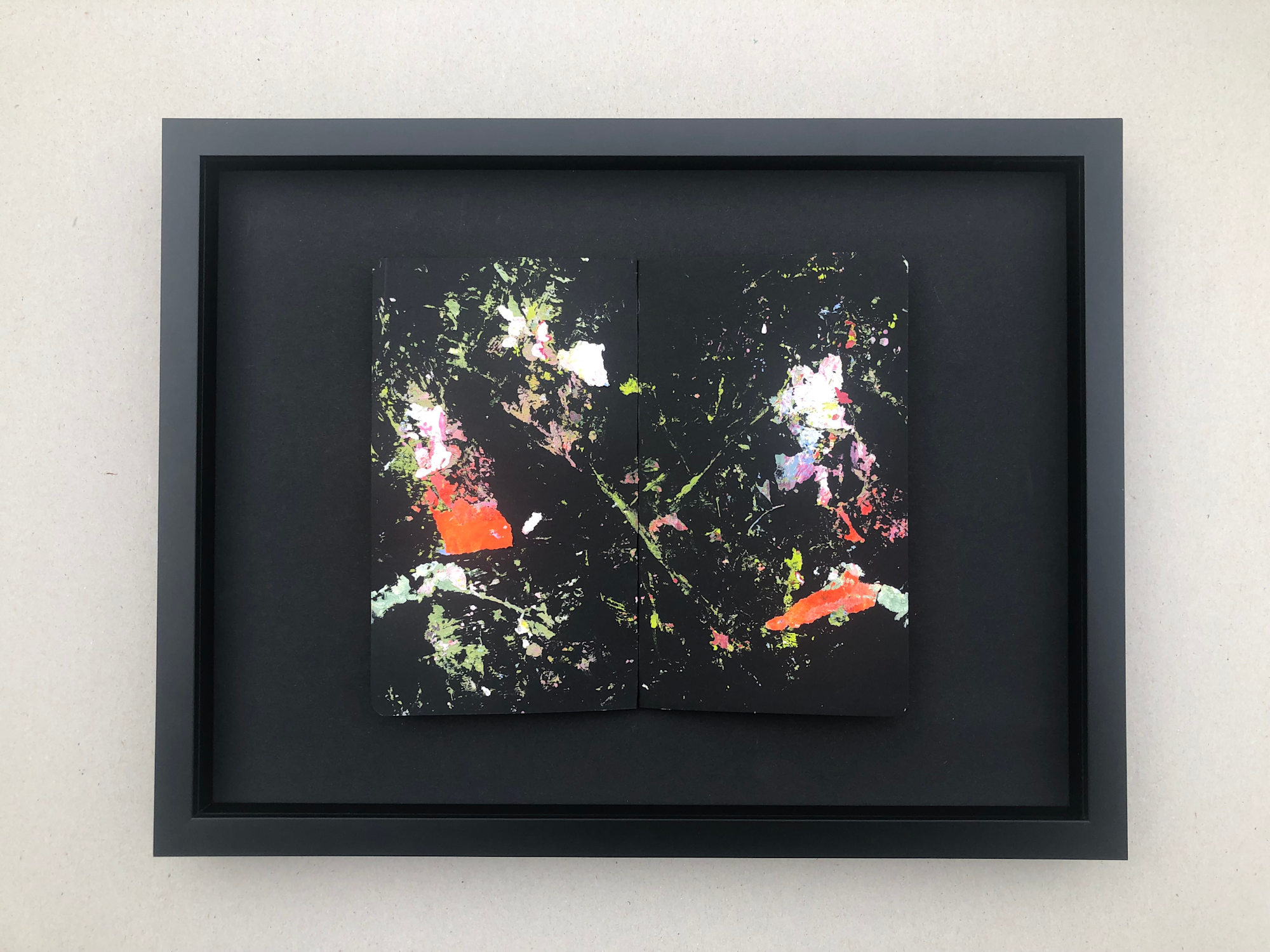 A small-format work on deep black paper — quiet, suspended, and yet full of presence.