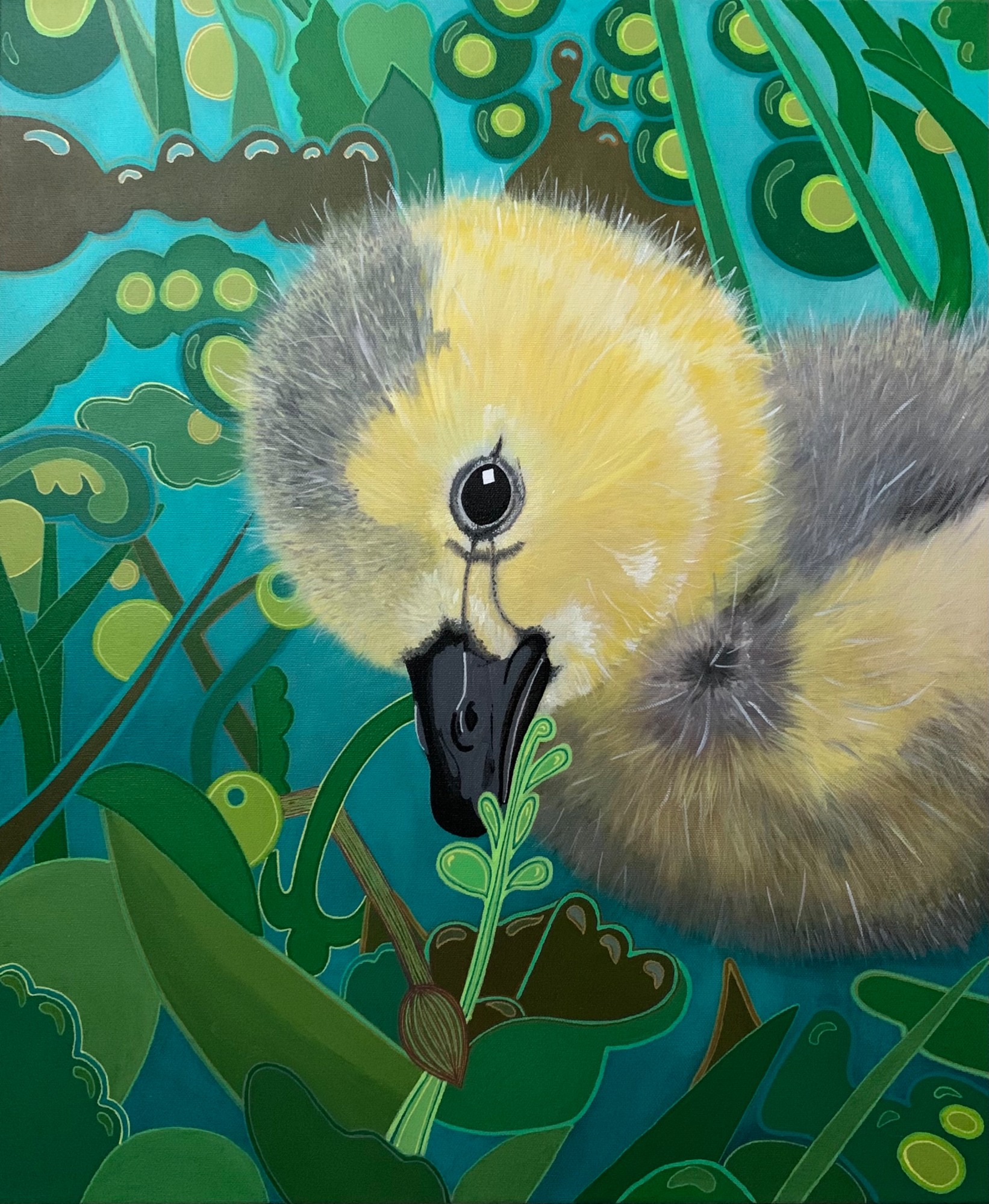 • Signature: Babies do not know the name we tag things. They are only attracted to shapes and colors. This baby gooseling, is just fascinated with the brighter one of all. I hope you enjoy his child like enjoyment of life!