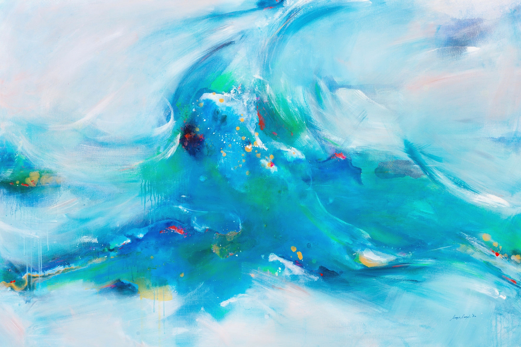 DESCRIPTION: What's Coming is an artwork created on the first days after the lockdown. Positive stress and anticipation of "what's coming" dominates the creative process. Dynamic, energetic multicolor brushstrokes are the aesthetic highlights of this painting and promote movement, rhythm, flow.
