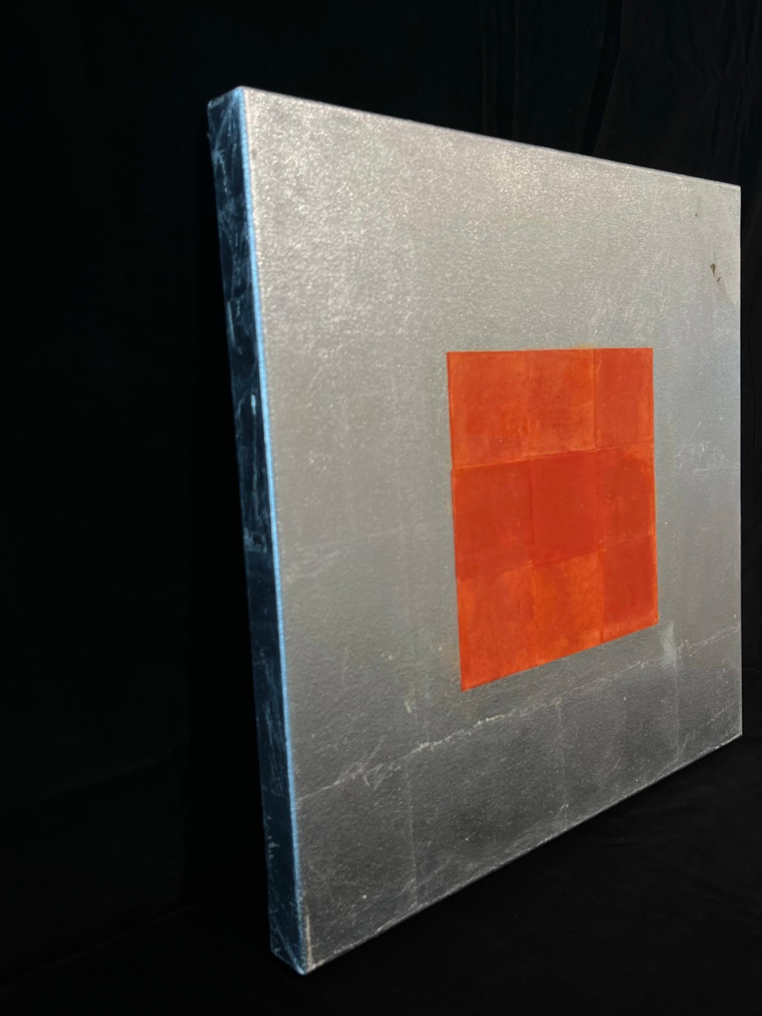 SILVER WITH WARM RED SQUARE