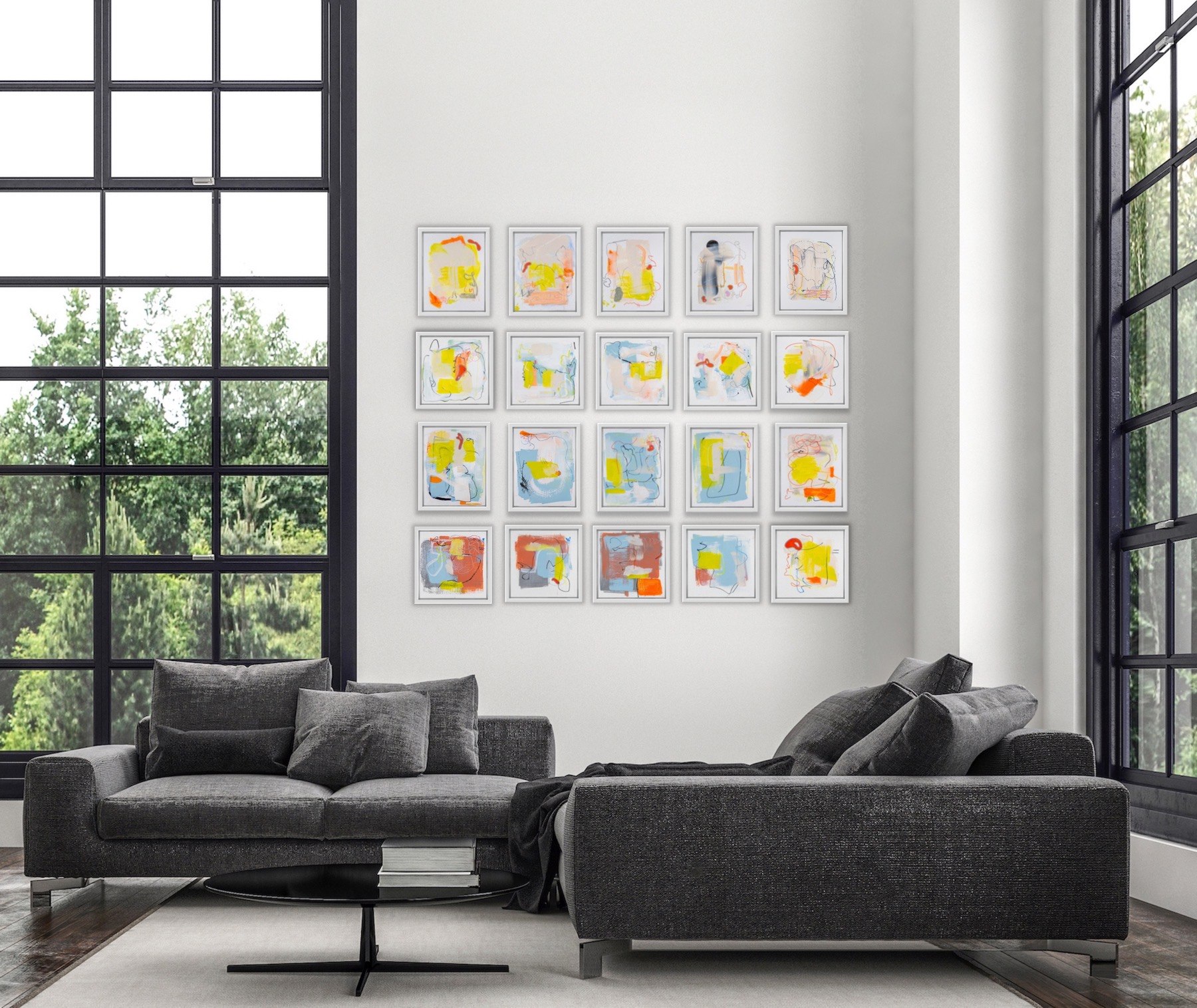 Lifelines” anchors the Life’s Harmonics chapter as a key mid-analog work where gesture first coheres into a rhythmic language. Delicate yet assertive marks intersect like mapped pathways, holding tension between spontaneity and restraint. Neon-inflected color moves in pulses rather than blocks, suggesting emotional frequency rather than narrative. The square format reinforces a sense of containment, as if the composition is calibrating itself—testing how much movement a field can hold before it breaks. Within the Mythohuman archive, this work reads as an early articulation of coherence: a human, tactile attempt to translate lived experience into harmonic structure.