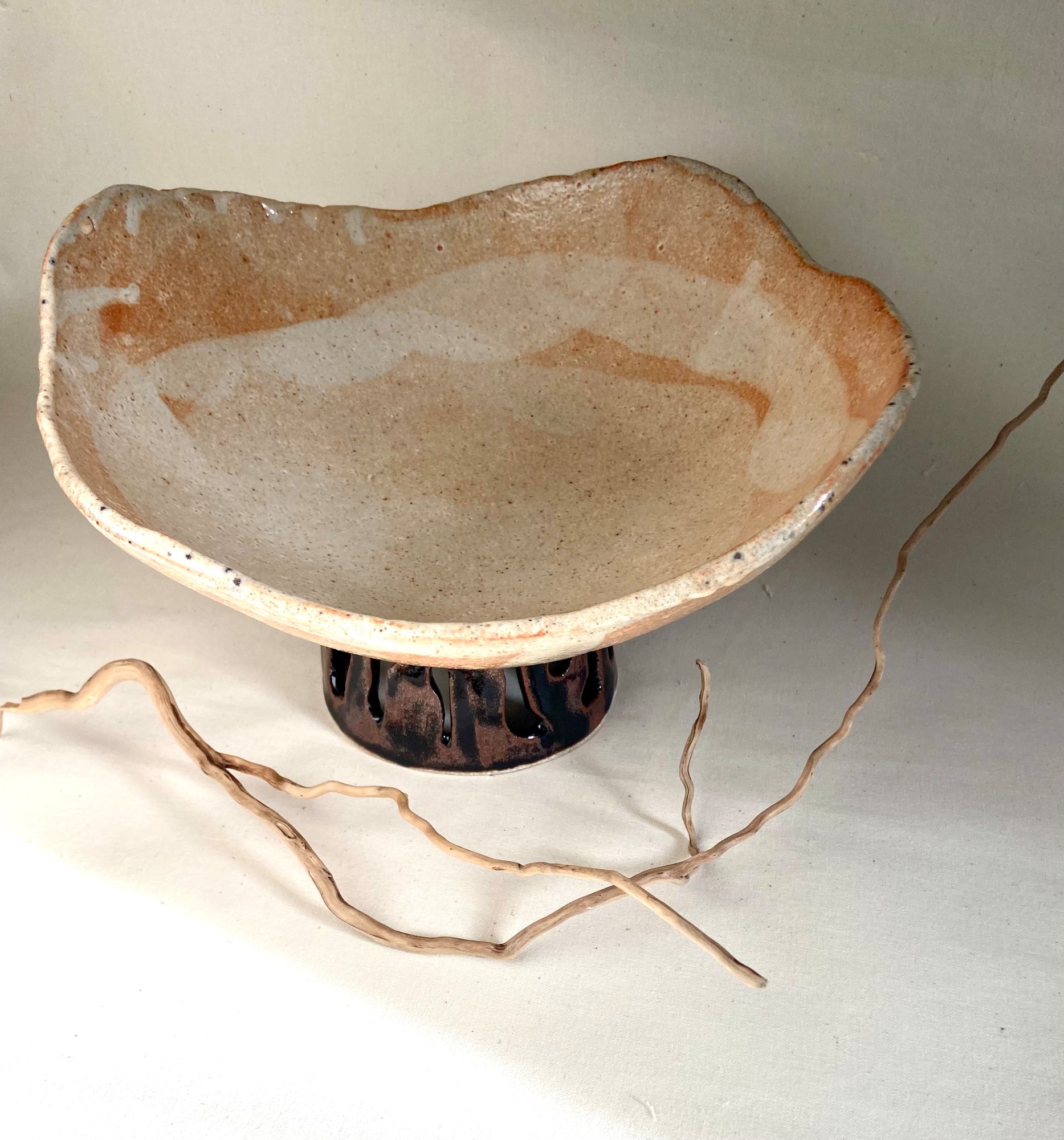 Handbuilt bowl with carved base. Cone 10 gas fired